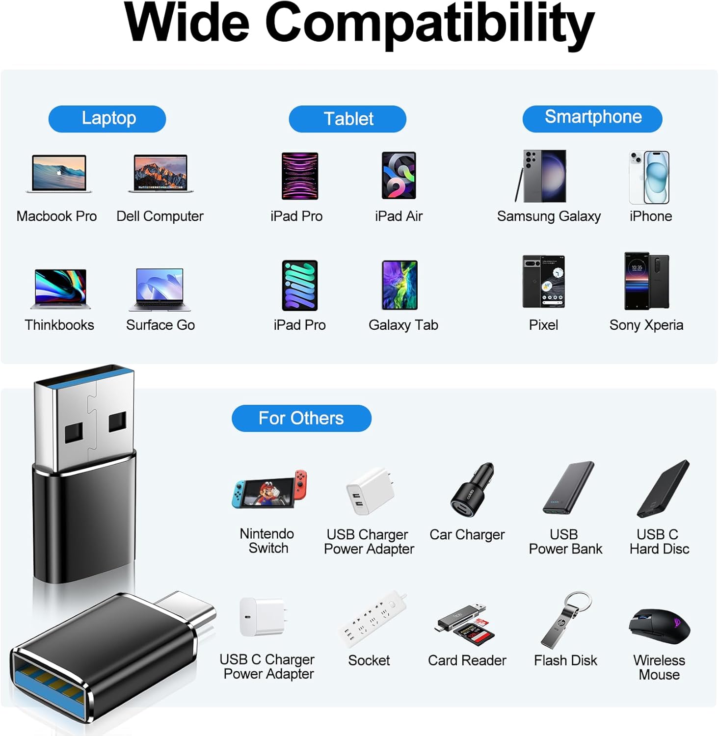 【Reliable Quality】Engineered for enhanced durability, durable aluminum alloy shell material,get excellent wear resistance and heat dissipation,the male USB C and female USB connectors & the male USB and female USB C connectors are designed to be plugged and unplugged up to 20000 times. Provides data transfer, device charging, memory space expansion, and additional computer peripherals.