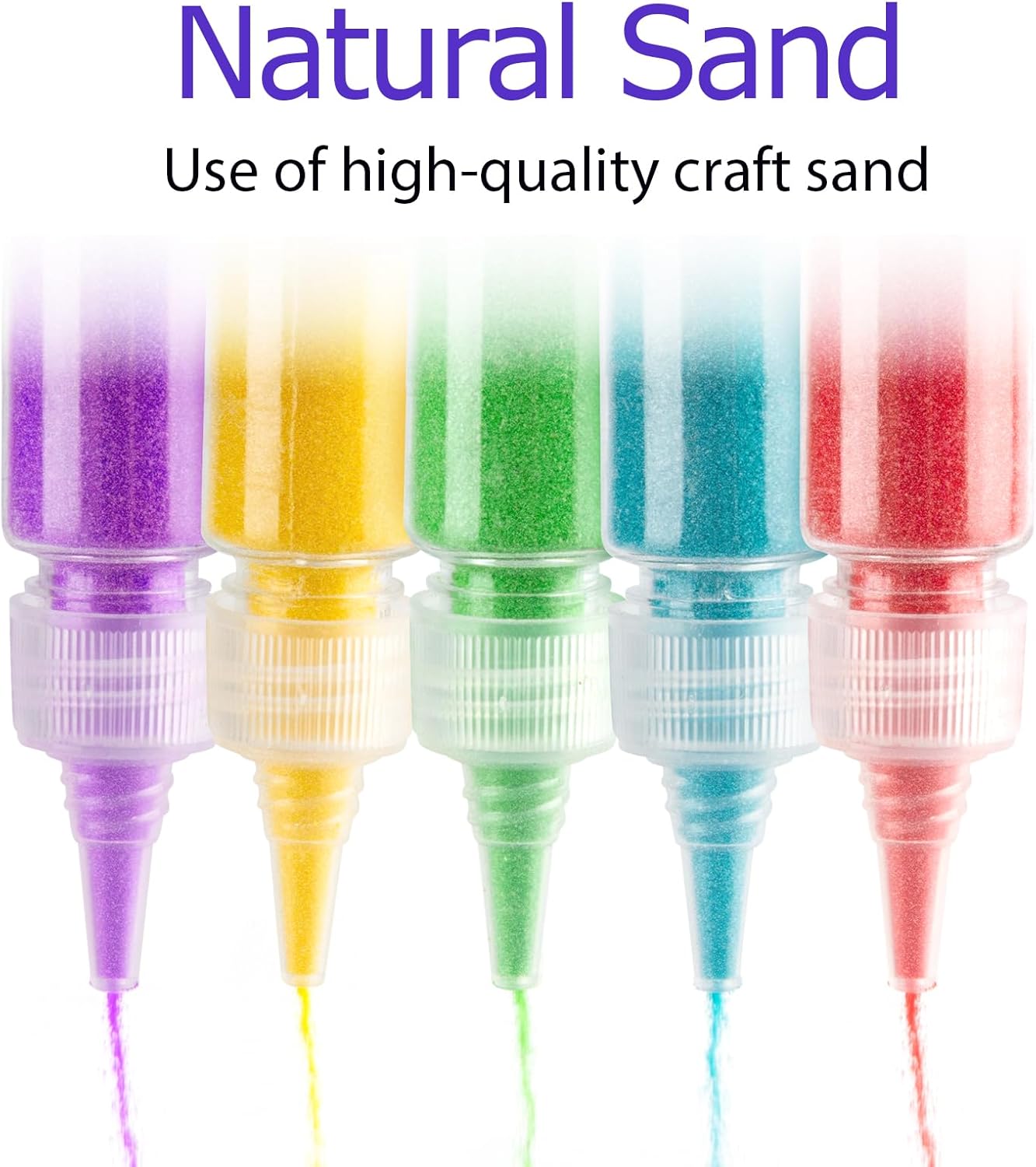 【Mess-Free Fun】Designed to minimize mess, this sand art set features a dedicated sand collection tray that makes cleanup effortless. The included tools allow kids to gently remove excess sand, while the paper funnel enables the easy transfer of leftover colored sand back into its bottle for future use