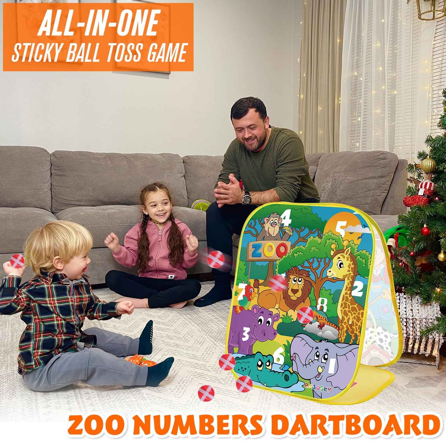 Learning While Playing: The farm side helps toddlers learn fruits and colors by tossing fruit bean bags into animal mouths, while the zoo side teaches numbers and basic math through sticky ball play