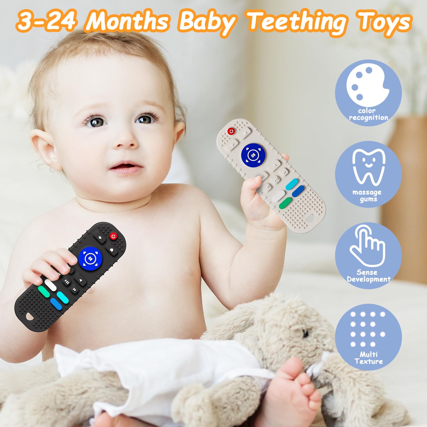 [Baby Teething Toy Set] Your baby will get two remote control-shaped gums. The teething toy colors are bright, which can improve the baby’s color recognition and cognitive ability. Suitable for babies aged 3-6 months and 6-12 months.