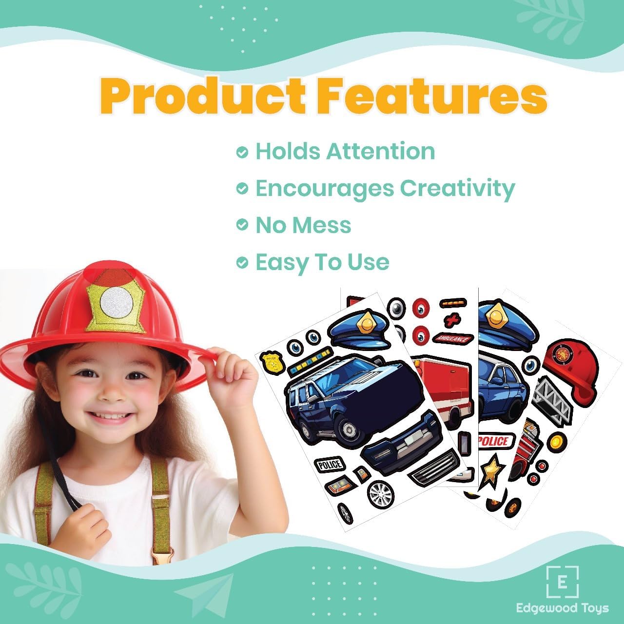 24 Make A Emergency Vehicle Sticker Sheets – Each pack includes 24 sheets of various first responder vehicles for your child to design including Includes Police Car and SUV, Fire Truck, and Ambulance