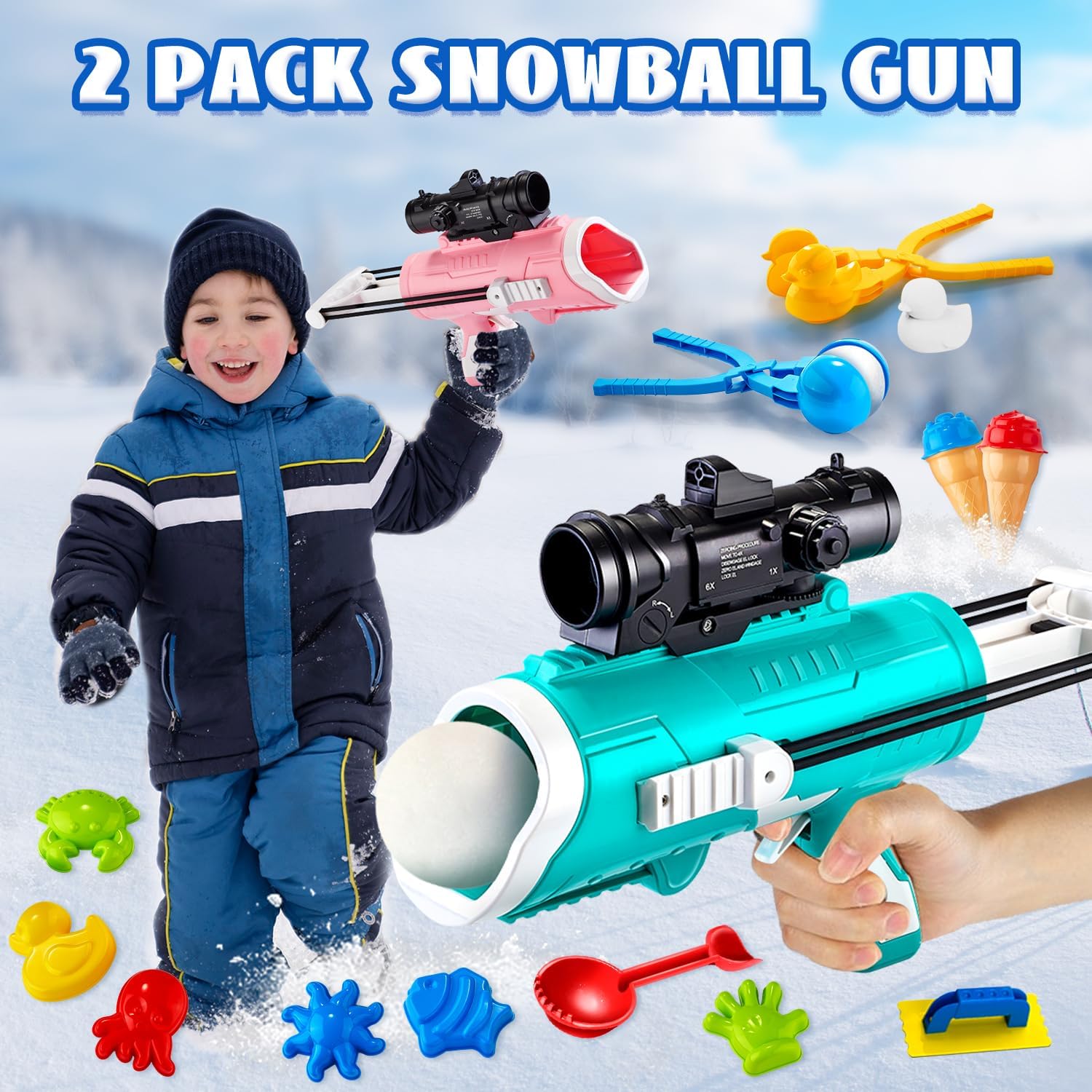 2Pcs Snowball guns4Pcs Ice Cream Mold6Pcs Snowy Molds (duck, octopus, minnow, starfish, mitten, and crab)