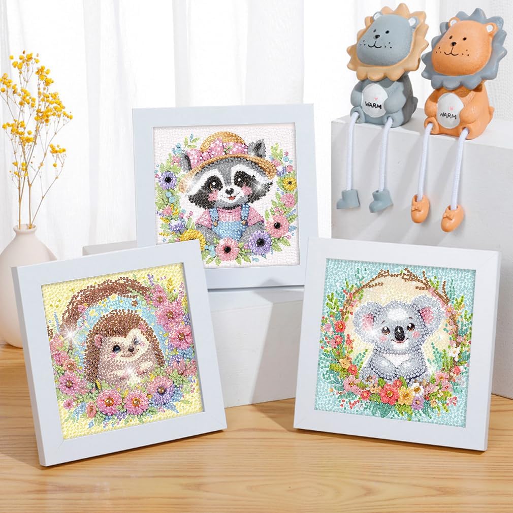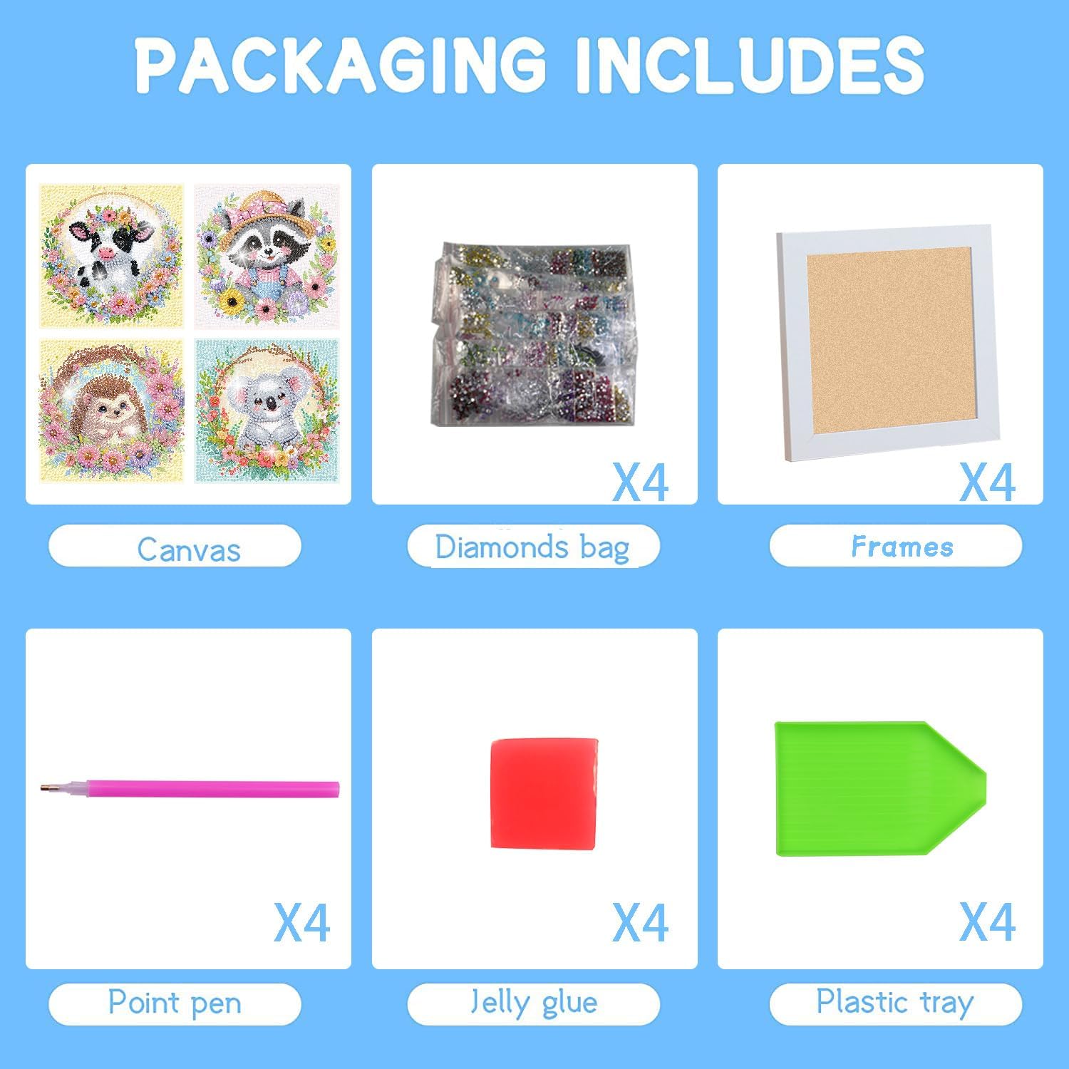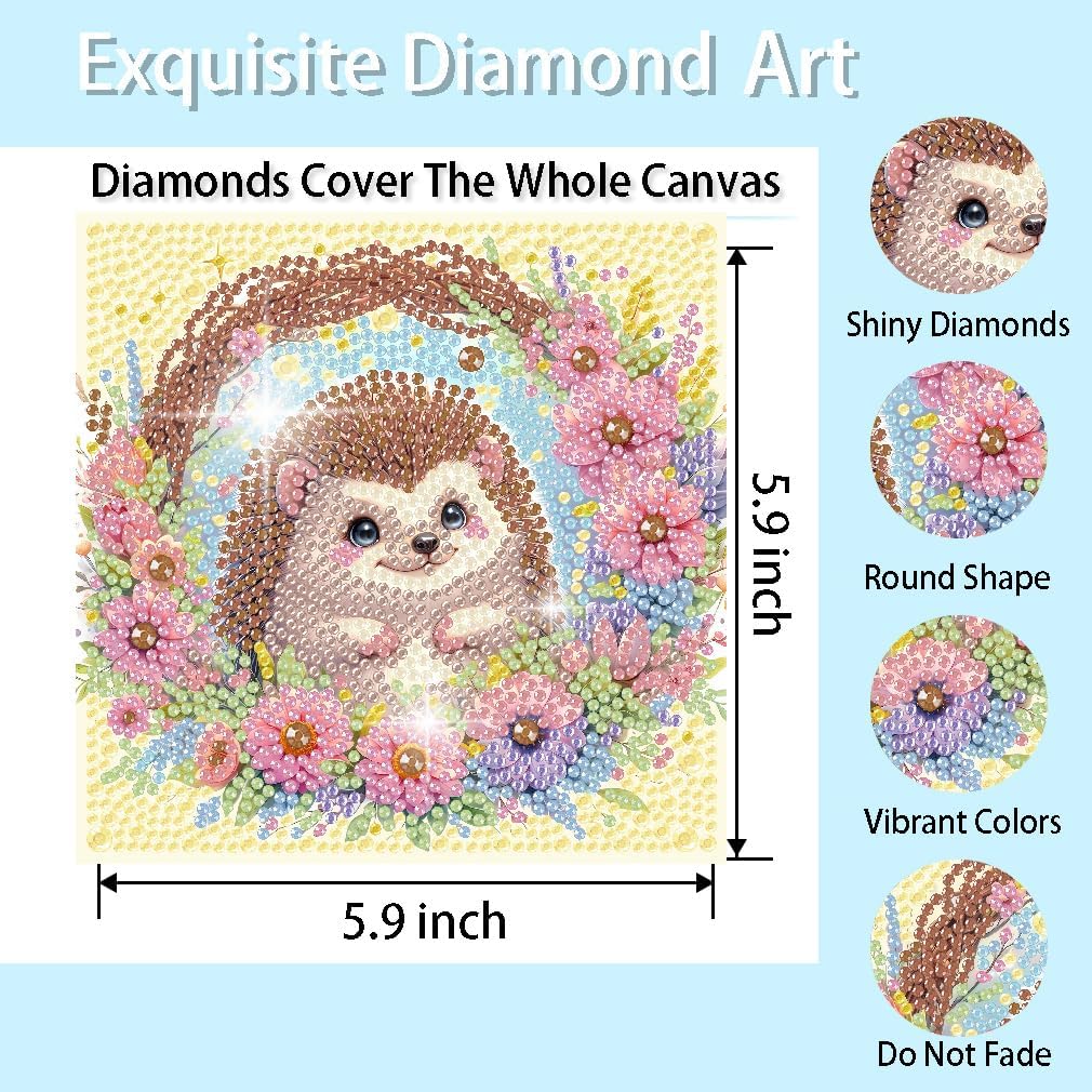 4 Packs DIY Cartoon Diamond Art Kits for Adults, Cute Animals DIY 5D Diamond Arts Mosaic Kits for Adults Beginner, Full Round Drill Gem Art for Home Wall Decor Present 6X6 inch