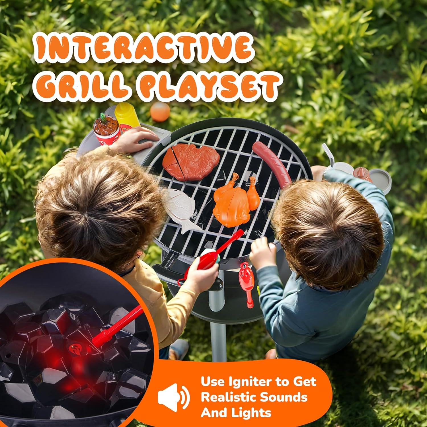REALISTIC ROLEPLAY ADVENTURE: With 47 detailed accessories, including a BBQ kids grill, utensils, beverages, condiments and lots of food (such as turkey, T-bone, hamburger, hot dog, fruits, vegetables and so on) allows your kids to enjoy cooking variety of foods and dive into the ultimate pretend barbecue experience(Note: red tablecloth is not included)