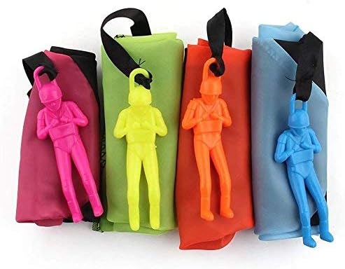 COMPACT MATERIALS: Our parachutes are made of 2 parts: Chutes + parachute men. Parachutes are made of compactable and durable hardcore nylon fabric with and inner layer of fabric net. 4pcs parachute men are made of qualified ABS plastic to ensure these parachutes toys will NOT be broken easily
