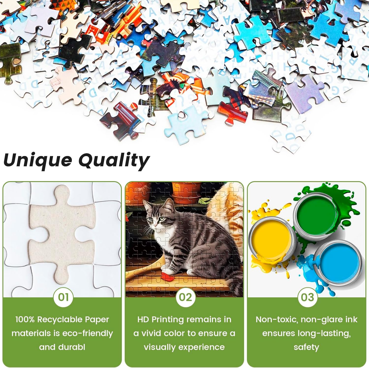 High-Quality Materials: Our puzzles for adults 500 pieces is made of recycled cardboard with Non-toxic Ink, ensuring durability and longevity. The sturdy puzzle pieces are resistant to bending and fading, allowing for repeated use and enjoyment.