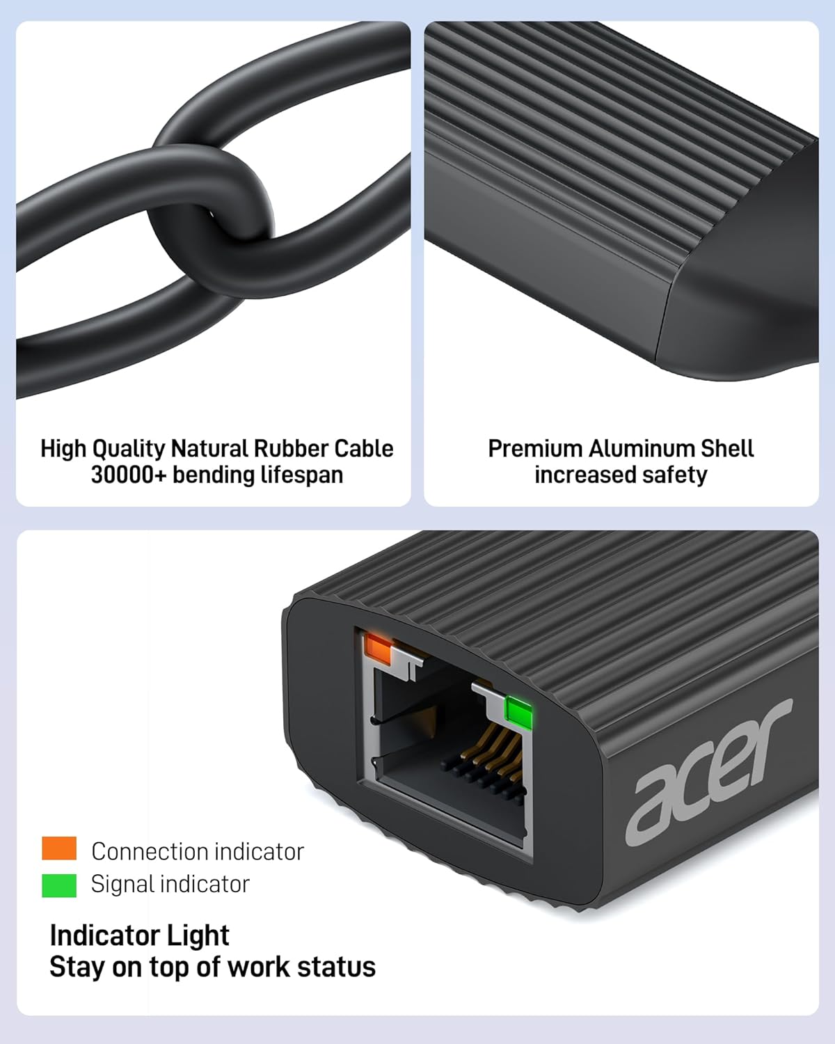 Be the first to review “acer USB C to Ethernet Adapter, Gigabit RJ45 to...”