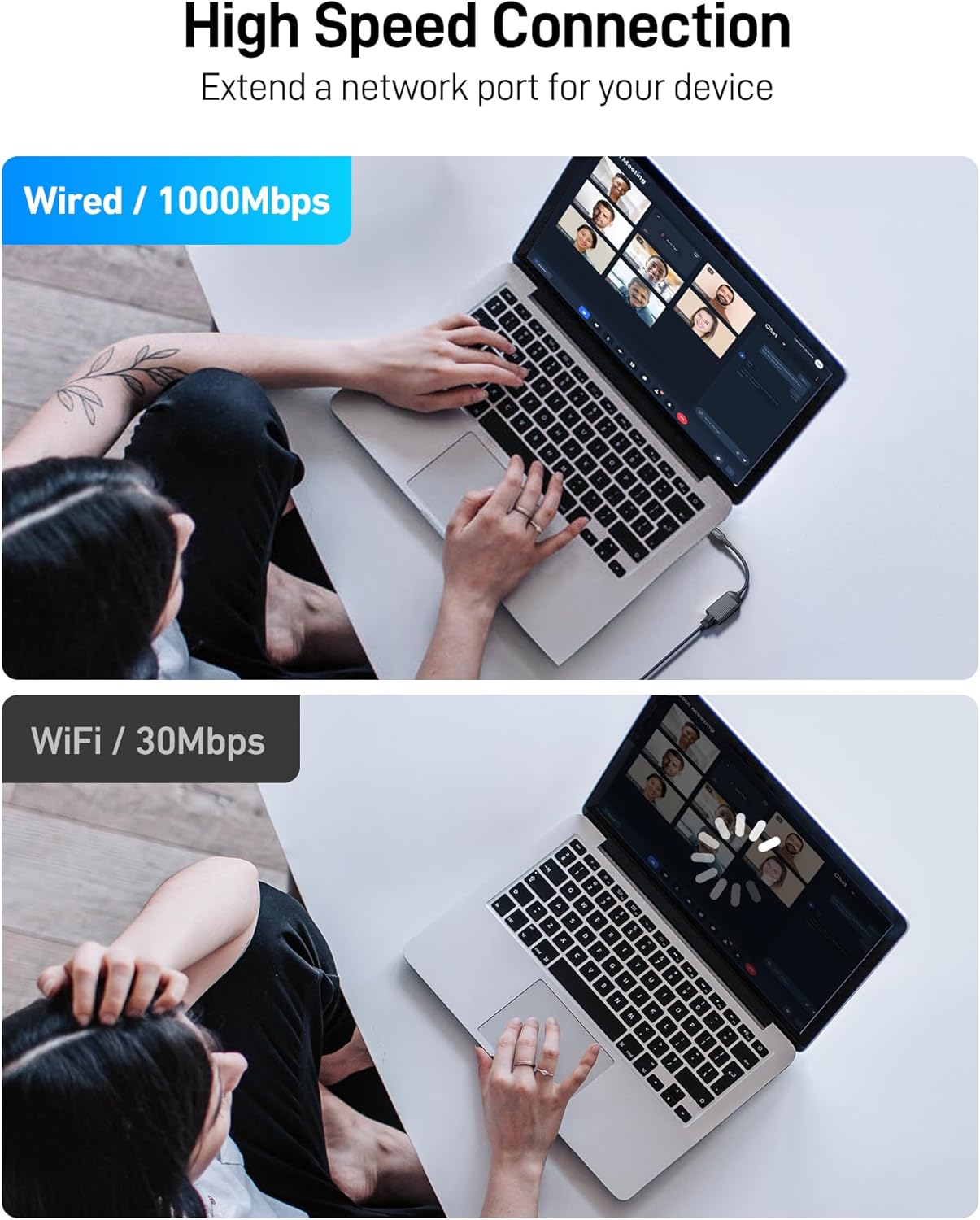 【Plug and Play】The USB C to LAN Adapter is driver-free for Windows 11/10/8.1/8, macOS, iPad OS, Chrome OS, Linux, and Android Systems. Just plug in and enjoy a smooth wired network.