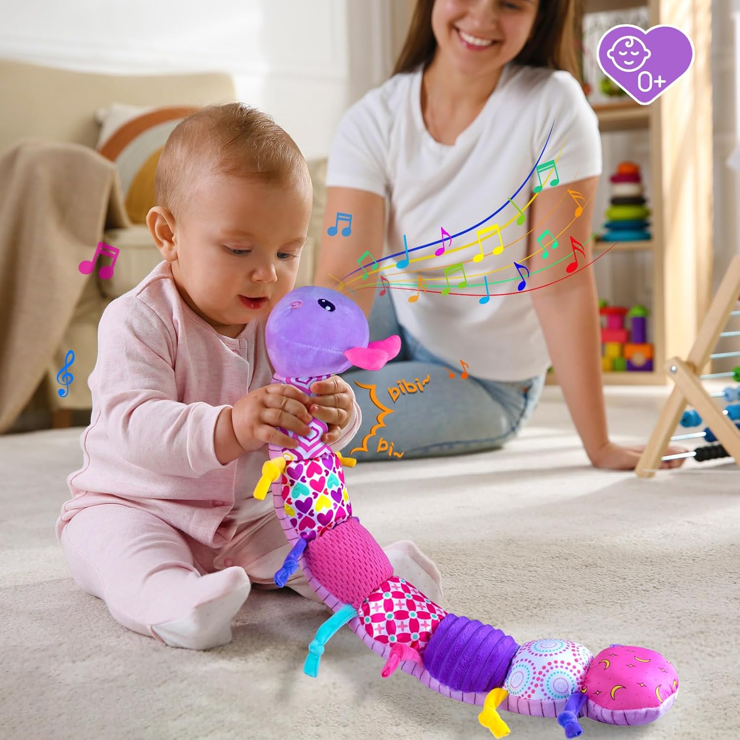 【5-in-1 Newborn Sensory Toys】Our caterpillar combine the fun of baby musical toys,rattle toys,vision developmental toy, crinkle sensory toys and stuffed animal plush toys.Baby love to explore the fun of it,suitable for car seat/tummy time/family time, suitable for 0-12 + months.
