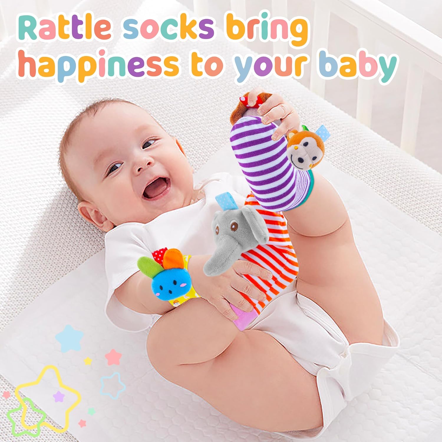 Baby Rattle Cotton Socks and Wrist Rattle Strap...