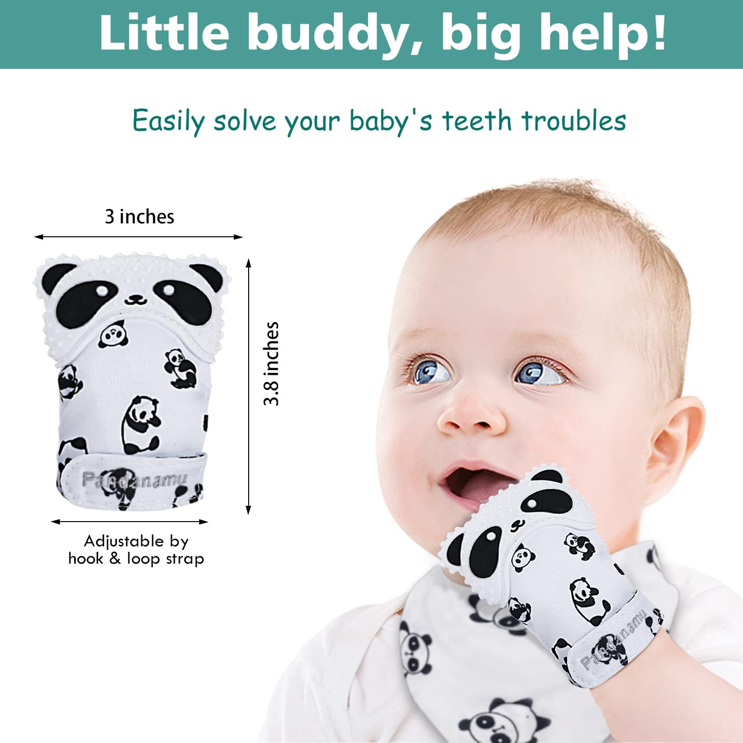 BABY’S FIRST TEETHING TOY: Pandanamu Teething Mitten is an innovative baby teething toy that combined a teether with a baby mitten, enables babies to soothe their teething pain, easy wear and handle. Super cute panda shape, simple black and white contrasting color, which are the easiest for baby to perceive and interest in, it will do a big help for your baby’s early brain development.