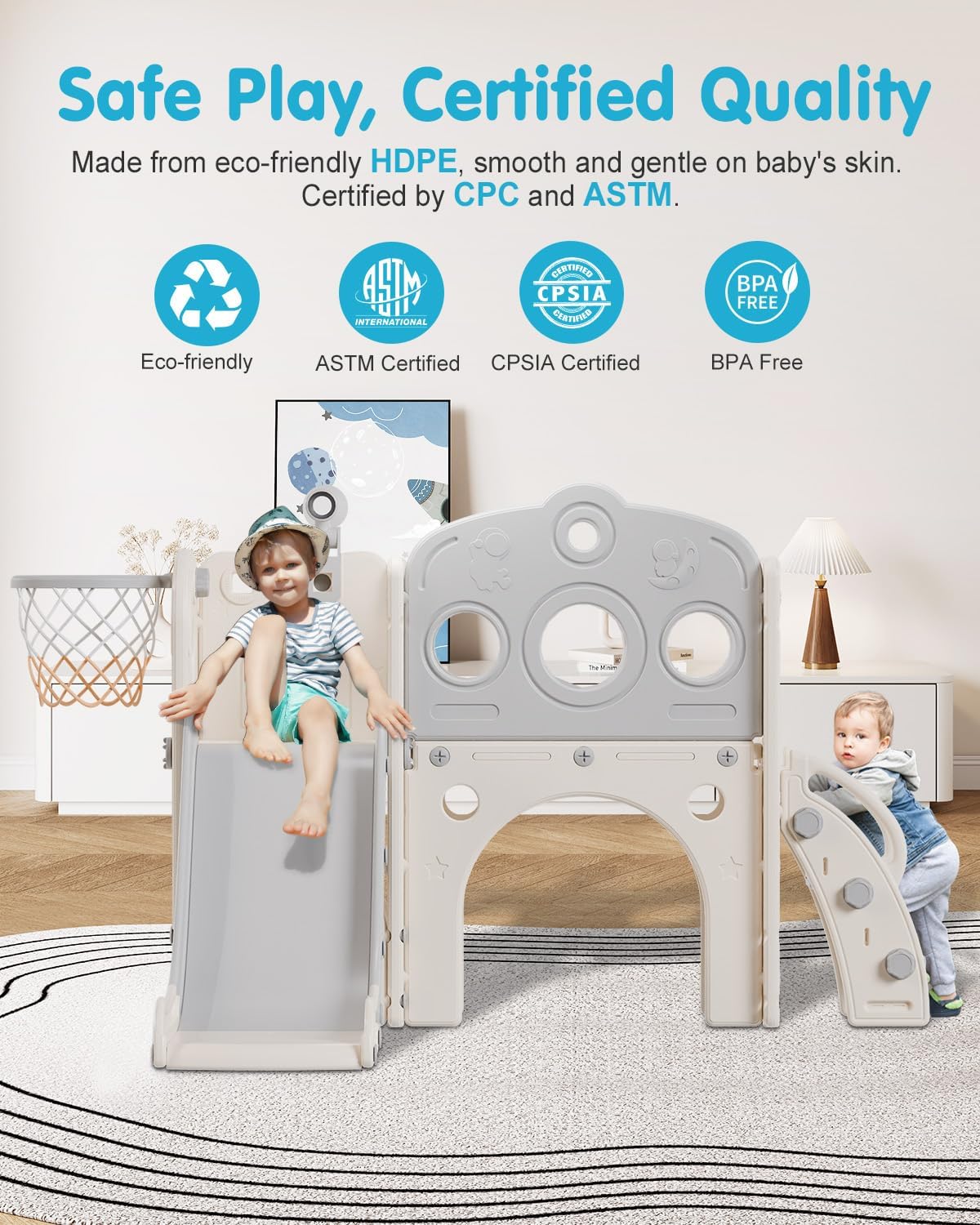 ASTM Certified + HDPE Material: Our indoor toddler slide is made of high-density, durable HDPE material, capable of withstanding the wear and tear of everyday use. All Babytronic toddler slide are rigorously ASTM certified to ensure children’s safety. The baby slide can support up to 160 lbs, suitable for almost all toddler to play on