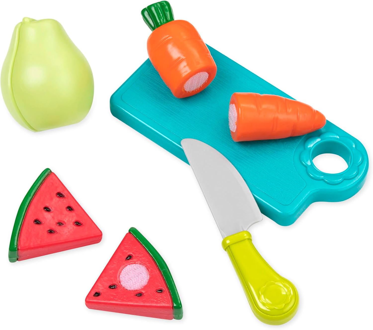 “Attention little shoppers, we’ve got a fun kids’ grocery cart and play food combo on aisle 7!” battat’s deluxe toy shopping cart and groceries bundle includes all the supplies toddlers need for a trip to both the market and the kitchen! The toy grocery cart is designed especially for little hands to grab, push, and pretend shop in the supermarket! And, it’s filled with the finest toy food, from delicious apples and oranges, to dry goods, for an extra realistic shopping experience! These cute fruit and veggie toys encourage healthy food options and promote imaginative play. Pretend to chop up the vegetables on a cutting board with one of the 2 kid-friendly knives included in this combo. The safe plastic knives even ‘cut’ the veggies, held together by fasteners, in half. Create a delicious pretend vegetarian feast with the Battat shopping cart & groceries bundle! Recommended for little chefs aged 3 years old and up.