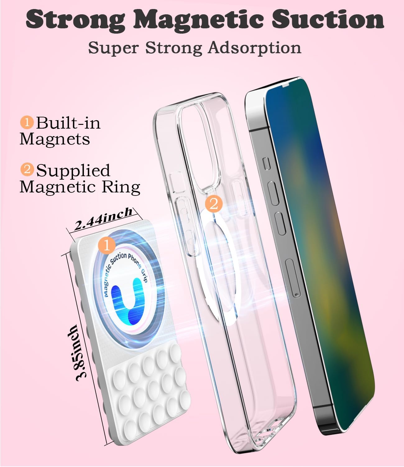Ultra Strong Magnetism:phone suction grip comes with a super strong magnetic ring that securely attaches to your Mag-Safe phone, Mag-Safe case or the Mag-safe metal ring that comes with the product.