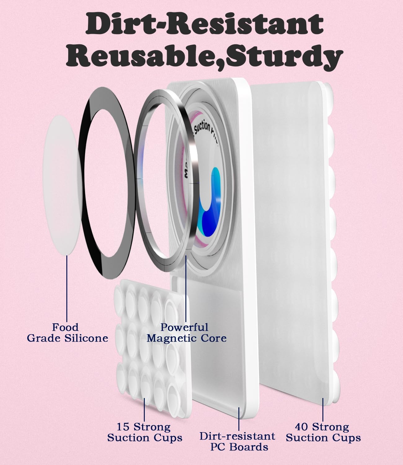 Content creation must-haves:suction phone holder has 40 suction cups to securely attach to mirrors, windows, fridges and any smooth surface, allowing you to completely release your hands and create videos anytime, anywhere!