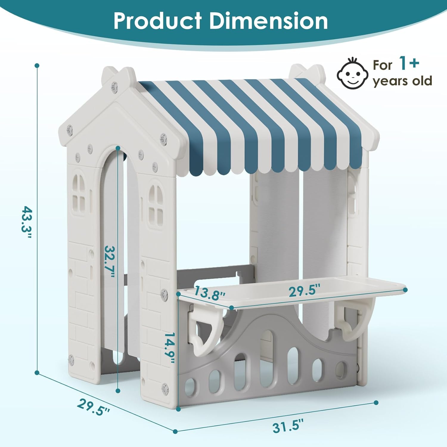 Blow Molding Technique – The toddler playhouse adopts the blow molding technique, offering better toughness, durability, and stability. Its surface undergoes multiple processes, resulting in a smooth finish without any burrs. The package includes installation tools, easy to install according to the user manual.