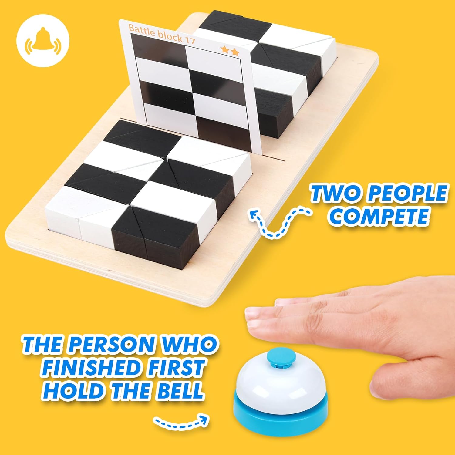 Double Battle Game-There are two puzzles on the same board and one Bell, this allows this game to be more interesting and challenging. Whoever completes the pattern on the card first will win.