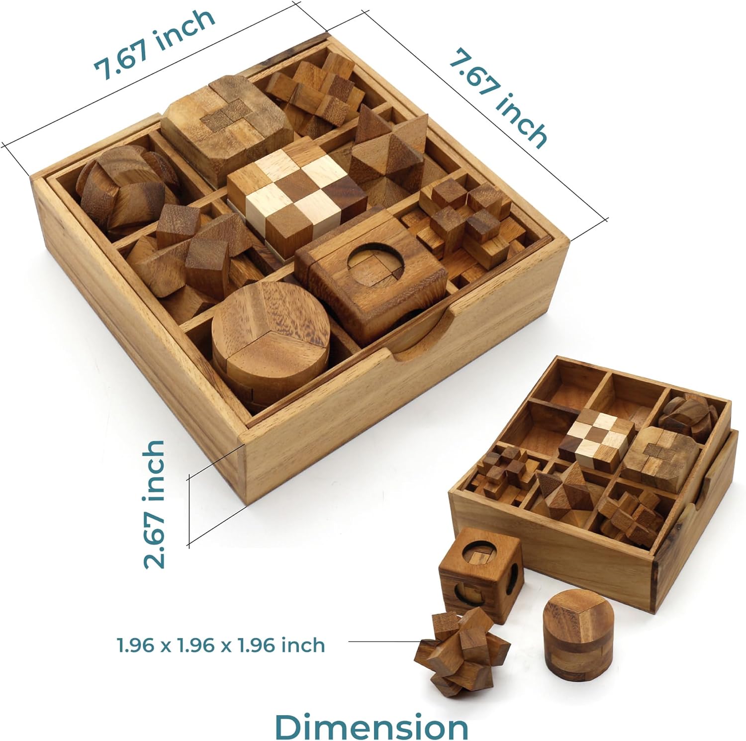 Unuiqe Puzzle Collection: Our wooden puzzle box set features a variety of brain teasers, interlocking games, and 3D puzzles. From intricate designs to mind-bending challenges, this set offers a range of difficulty levels to keep you engaged and entertained.