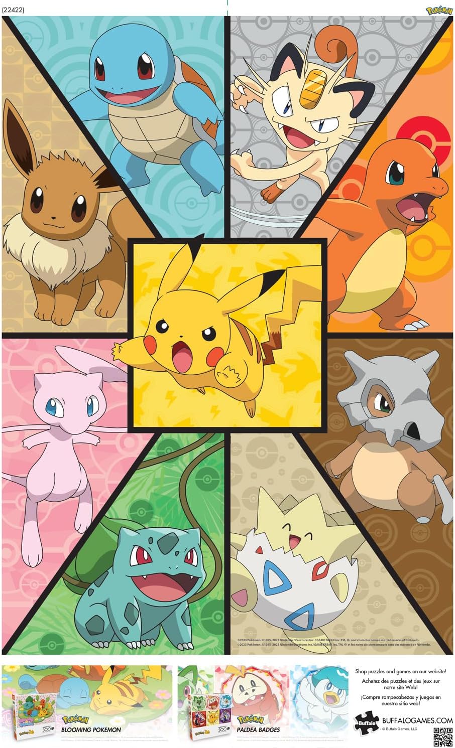 This 300-piece Pokémon jigsaw puzzle by Buffalo Games features some iconic faces from the Kanto Region, including Pikachu, Eevee, and more! The pieces of this puzzle are larger than traditional puzzle pieces, which makes them easier to see and hold for a pleasant puzzle experience. Every Buffalo Games jigsaw puzzle is manufactured from recycled puzzle board. A precision-cutting technique guarantees that every piece will fit soundly with the company’s signature Perfect Snap™. A bonus puzzle poster is also included so that you have a handy reference of what the completed puzzle should look like while you put yours together. ©2023 Pokémon / Nintendo / Creatures / GAME FREAK.