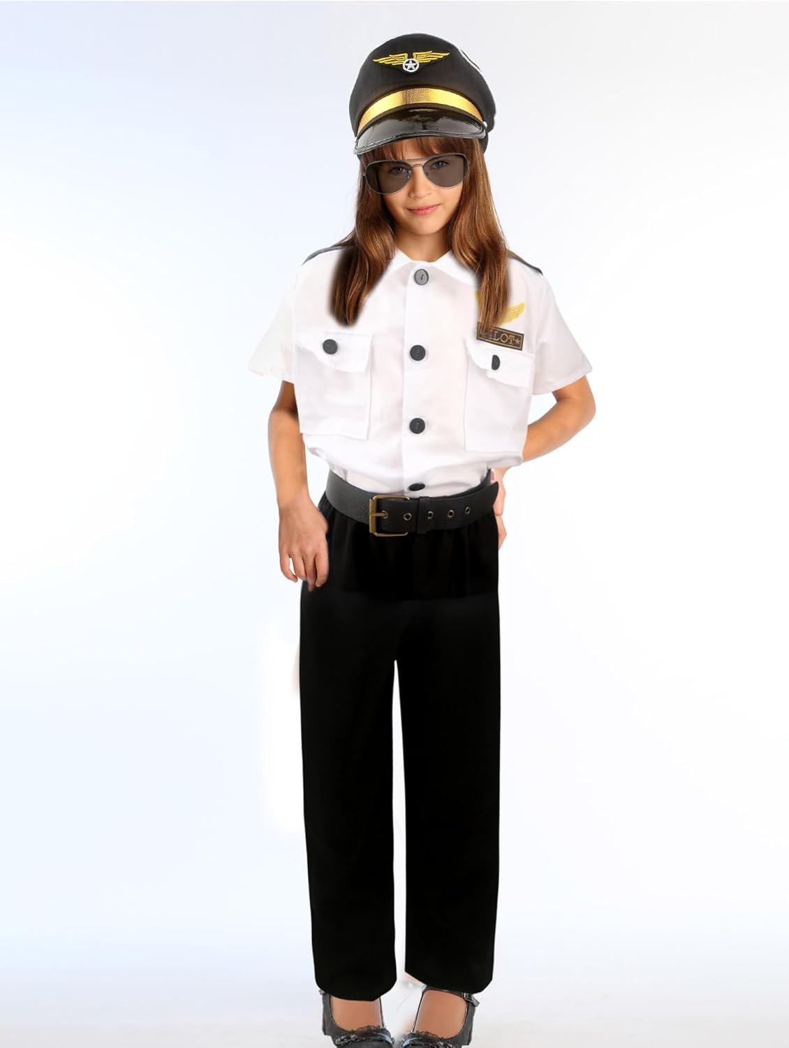 Puteraya Children Pilot Costume Set Captain Uniform Dress Up for Kids Boys Halloween Cosplay Pretend Role Play Theme Party