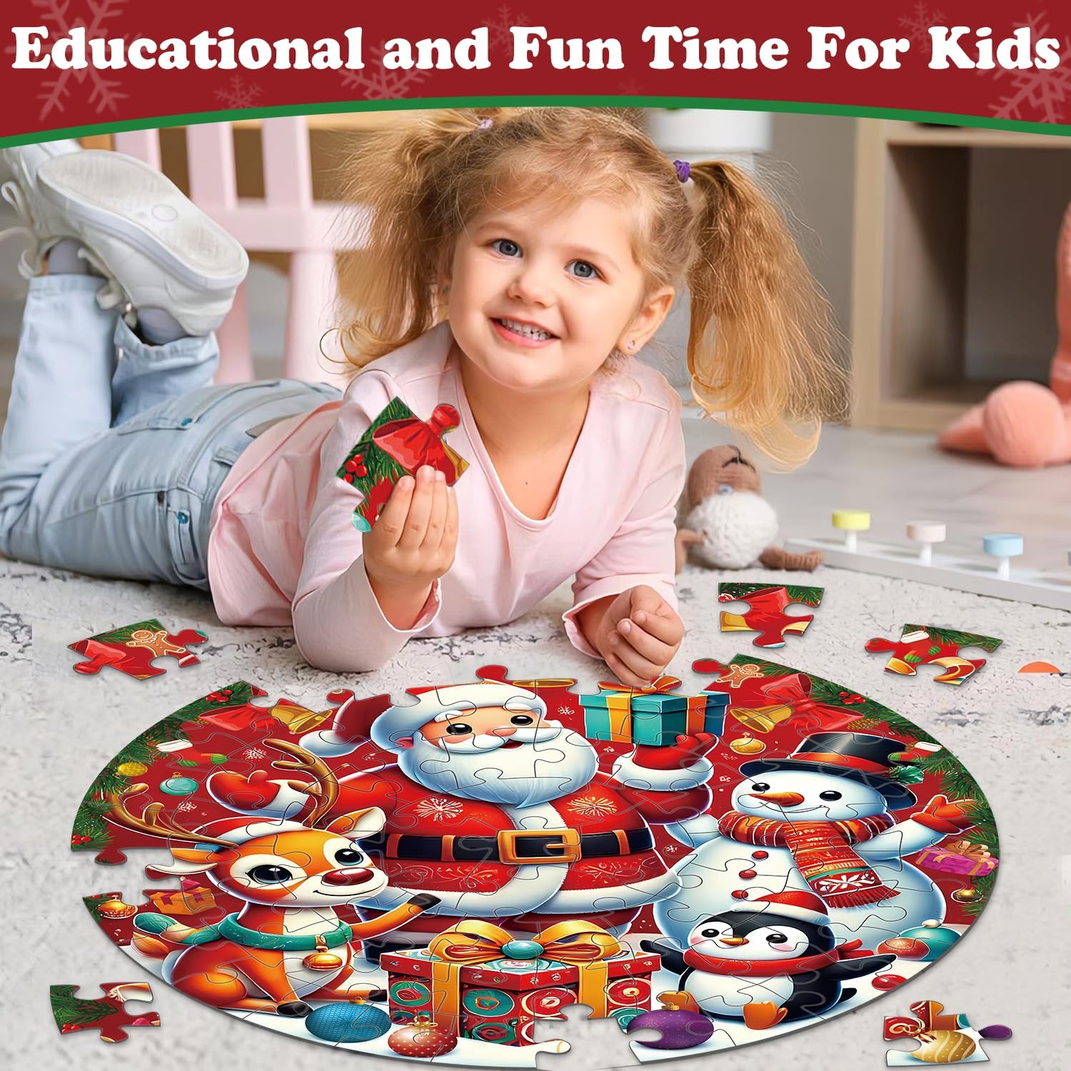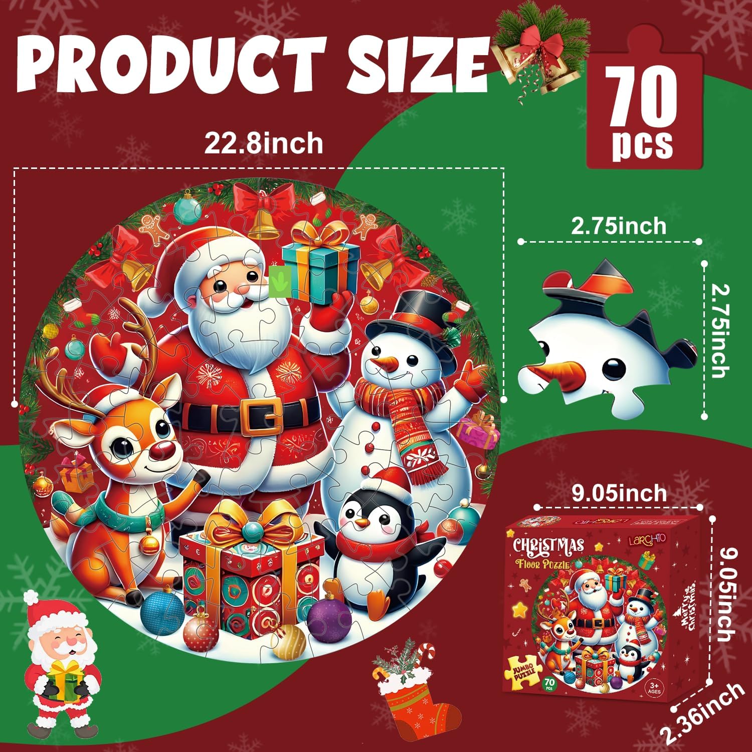 Christmas Floor Puzzles for Kids Age 3-8, 70 PCS Giant Christmas Jigsaw Puzzles with Santa Claus and His Friends Educational Christmas Gifts for Kids Girl Boys 4 5 6 7 8