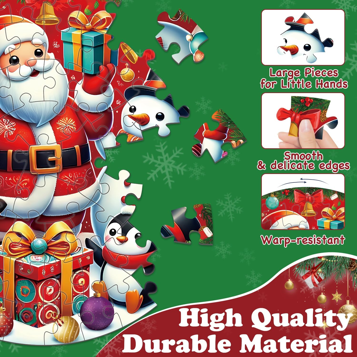Sturdy and Kid-Friendly Design: Made with thick, durable cardboard, this jumbo christmas jigsaw puzzle is designed for little hands to handle easily. Its colorful and festive design ensures hours of fun while creating a magical holiday atmosphere.