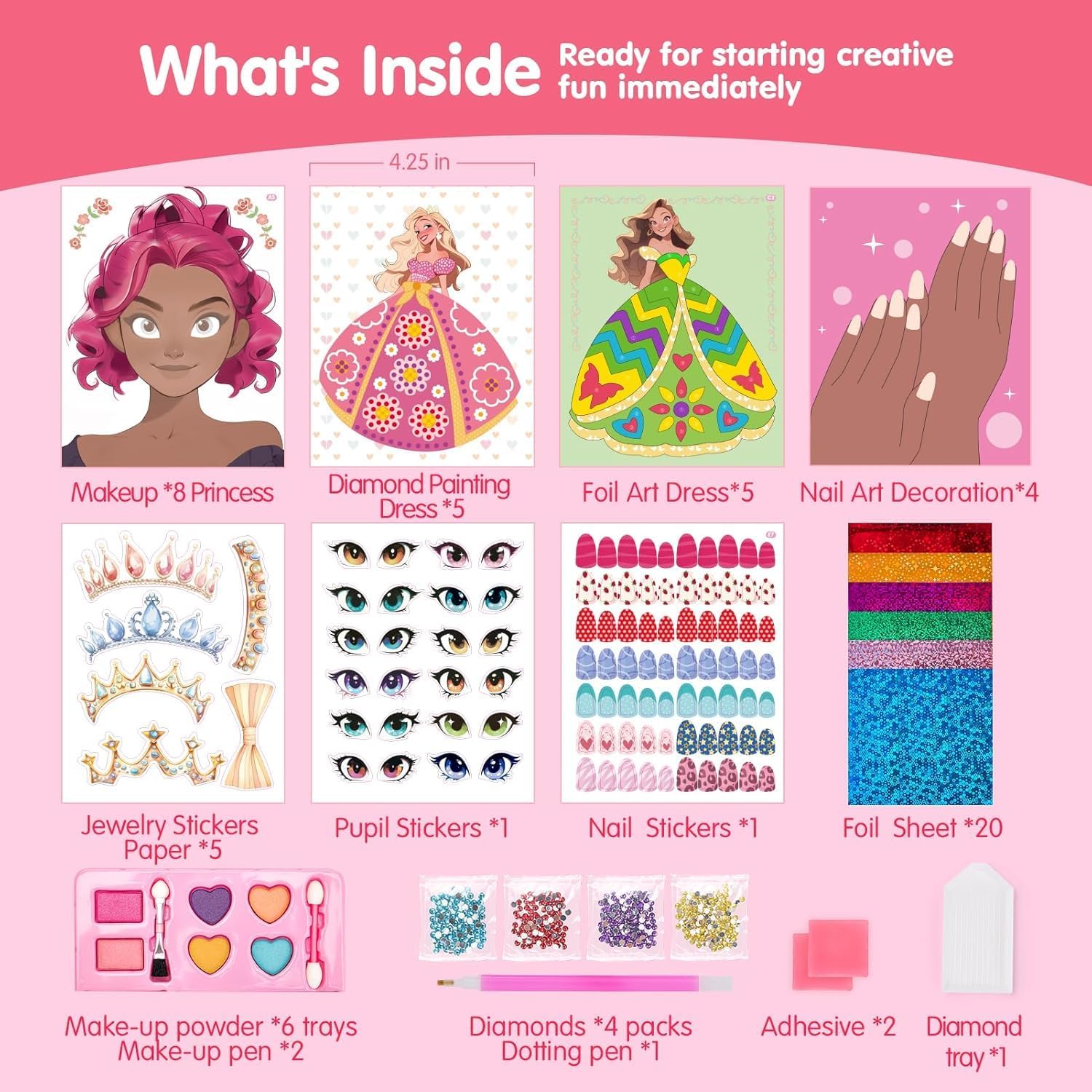 Screen-Free Fun & Learning: Reduce screen time with this engaging princess craft kit that combines makeup, diamond painting, and foil art. Each activity encourages problem-solving, imagination, and social play, whether your child enjoys it alone or with friends. Perfect for fostering creativity and social development, this set provides hours of educational entertainment