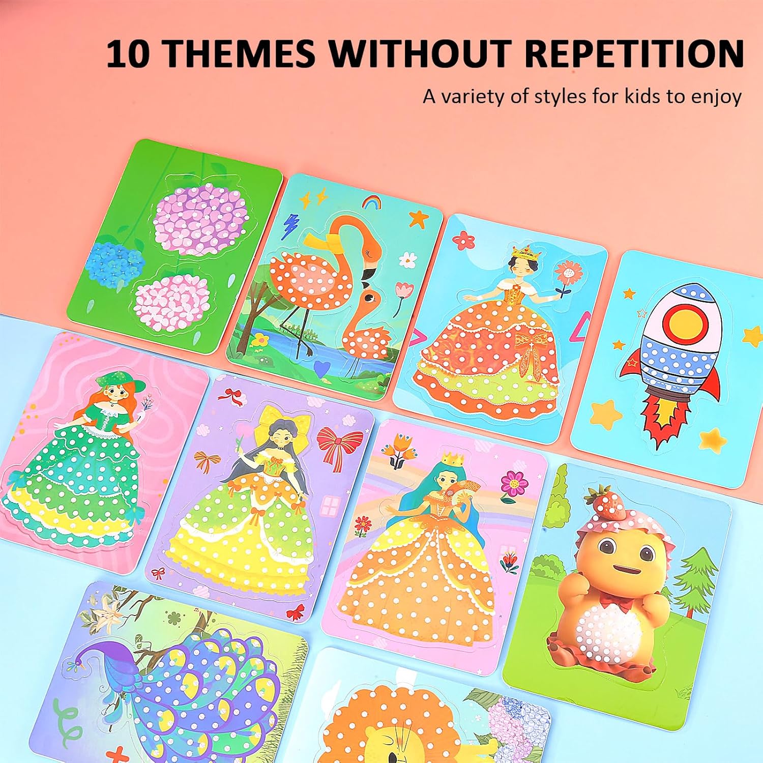 【Fabric Art Frenzy】 The creative puzzle puncture painting are designed with 10pcs different theme, such as princess, girls, lion, flower and so on, no repetitive patterns, increase children’s interest, enhance the hands-on ability in the happy play