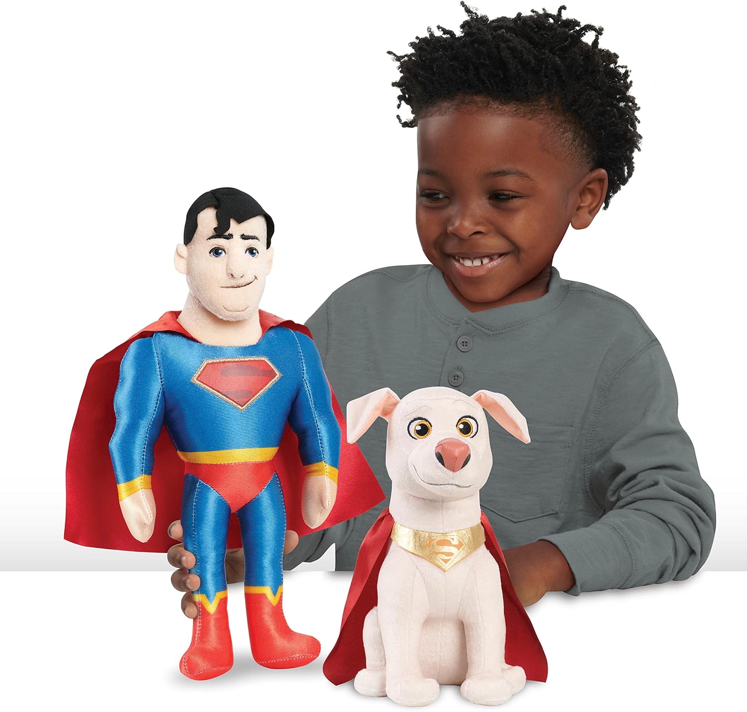 DC SUPER-PETS SUPERMAN and KRYPTO Companion 2-Pack Plush includes SUPERMAN and KRYPTO THE SUPERDOG plush toys.