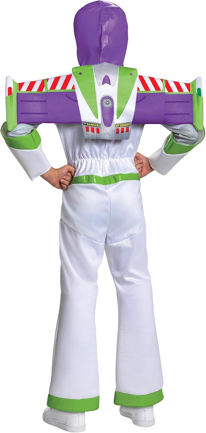 Your little one can go to “Infinity and beyond” This Halloween in this Buzz Lightyear deluxe child costume! This jumpsuit features a foam overlay bodice, built out cuffs, vinyl trim at sleeve and pant cuffs, detachable wings, and a separate hood.