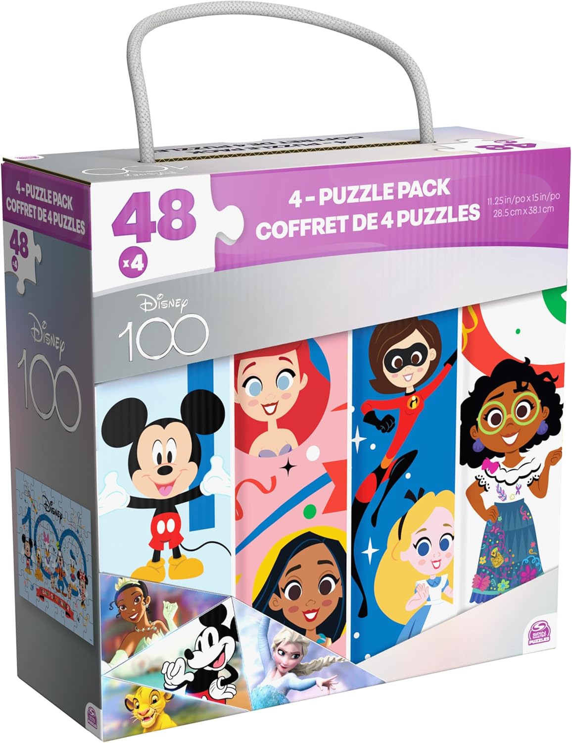 For 100 years, our passion has been storytelling. From one generation to the next, the greatest stories live forever. Bringing you the Disney 100th anniversary collection- because you made this dream come true. These four 48-piece Disney puzzles are perfect for Disney fans. They measure 11.25” x 15” and are great gifts for 4 year old girl toys and 4 year old boy toys. They come in a convenient rope handle storage box- ideal for gifting and storing. While these jigsaw puzzles are great for Disney lovers of all ages 4 and up, they are perfect puzzles for kids ages 8-10. You will love the fabulous vibrant artworks on these puzzles. “100 Years of Wonder” features classic characters like Mickey, Minnie, Donald, Goofy, Pluto, and Daisy. The “100 Years” puzzle has princesses including Ariel, Moana, Cinderella, Tiana, Mulan, and Belle. “A Magical Celebration” includes your favorite movie characters like Olaf, Lightning McQueen, Tinkerbell, and WALL-E. And finally, “Celebrate” has a mix of new and old characters such as Peter Pan, Mirabel, Mater, and Jasmine. Spin Master brings the fun of children’s entertainment home by offering a range of kids toys & games including baby toys, toys for girls, and board games. Collect your favorite stuffed animals, fidget toys, RC cars, action figures, dolls & accessories + more. From special gifts for men to baby & toddler toys for kids at heart, make your birthday gifts a breeze by shopping our diverse catalog selection. Still hungry for more, explore kids games, pool toys, outdoor games, and monster trucks for any time of the year. Get creative with arts and crafts, building toys and RC cars and take the action to the table with jigsaw puzzles for adults or card games. Spin into the sandbox today with Spin Master!