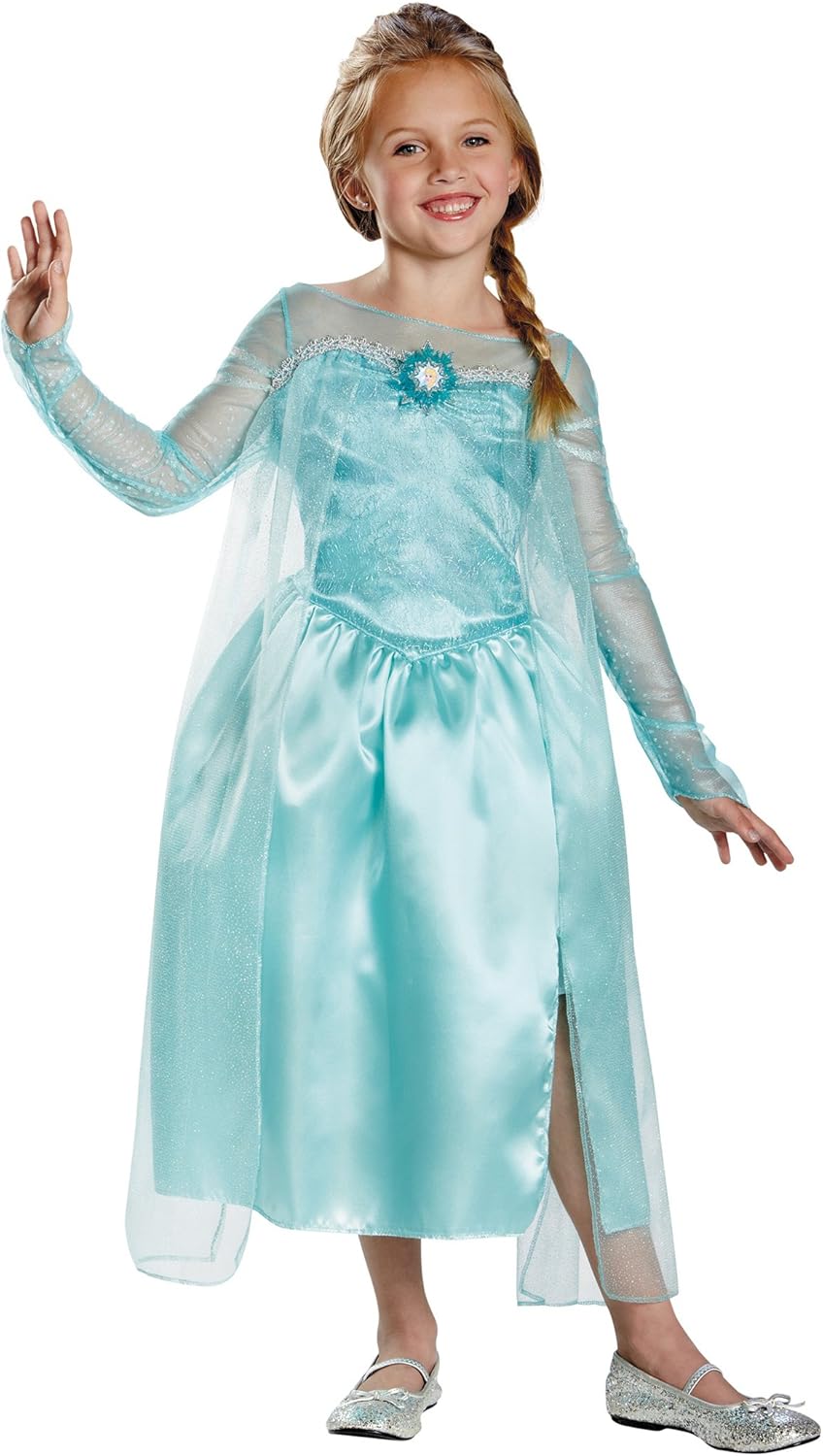 Frozen is a 2013 American 3D computer-animated musical fantasy-comedy film produced by Walt Disney Animation Studios and released by Walt Disney Pictures. The film tells the story of a fearless princess who sets off on an epic journey alongside a rugged, thrill-seeking mountain man, his loyal pet reindeer and a hapless snowman to find her estranged sister, whose icy powers have inadvertently trapped the kingdom in eternal winter. This beautiful satin dress has white knit mesh sleeves decorated with glitter swirls. The satin dress has organza overlay with glittery snowflakes, swirls & icicles.