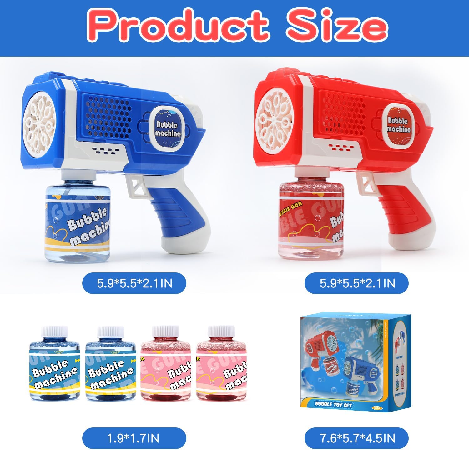 ❤Abundant Accessories:Bubble machine gun kit includes 2 bubble guns (bule and red), 4 bottles bubble refill solution and 10 Bubble Concentrate.Perfect Bubble Toy and Family Fun and Outdoor Activity Toys.
