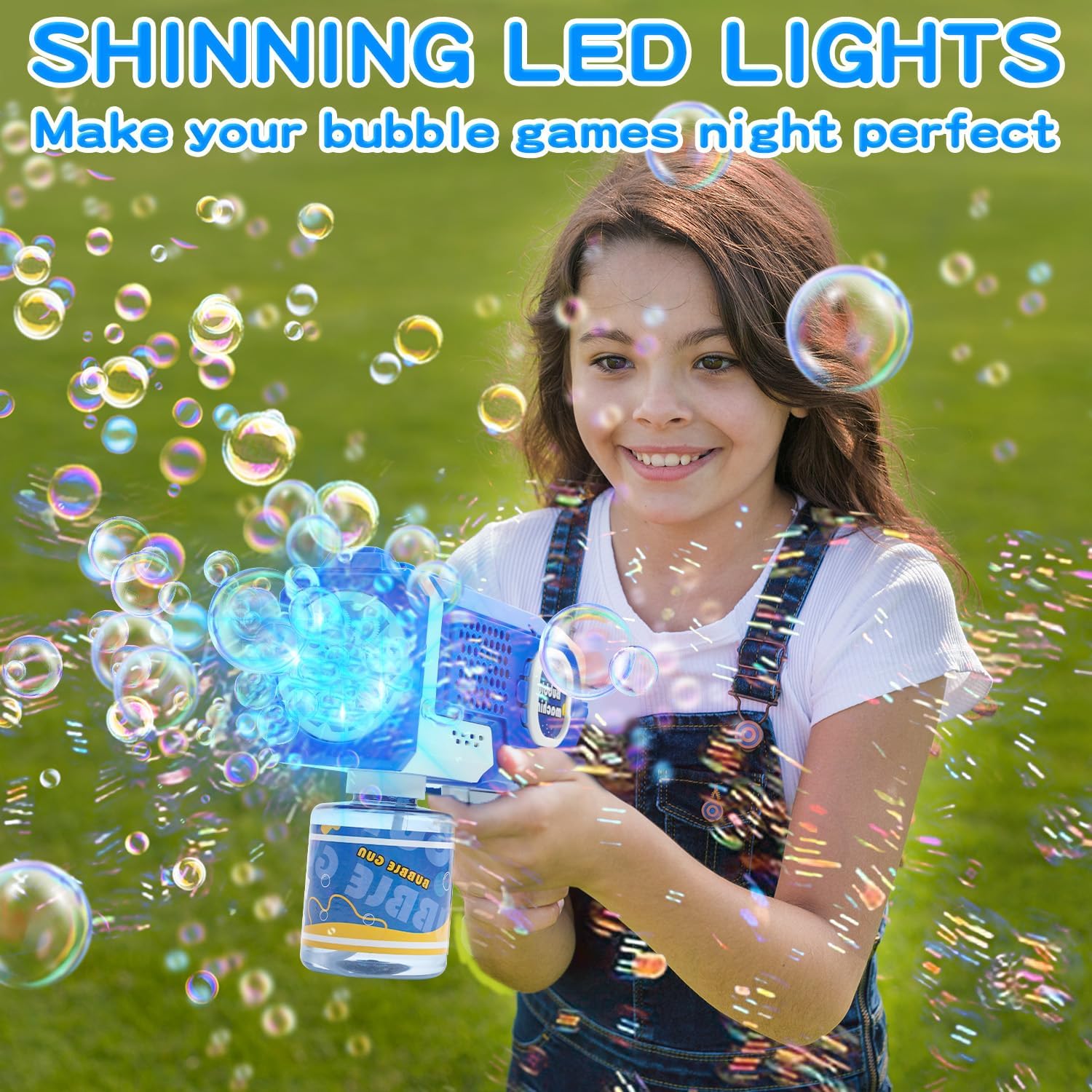 ❤Powerful Motor & 10000+ Colorful Bubbles:The bubble gun machine blaster with powerful motor to produce abundant bubbles.The bubble blower has 8 outlets, you can feel the happiness brought by 10000+ bubbles per minute.