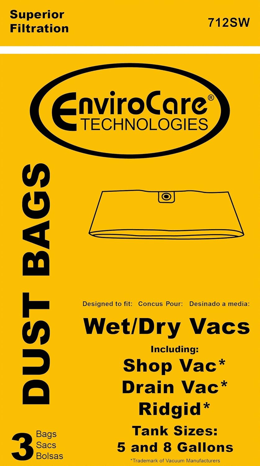 EnviroCare Replacement Vacuum Cleaner Dust Bags for Shop Vac Type E 5 – 8 Gallon Wet Dry Vacuums made to fit Shop Vac, Drain Vac and Rigid Machines 3 pack