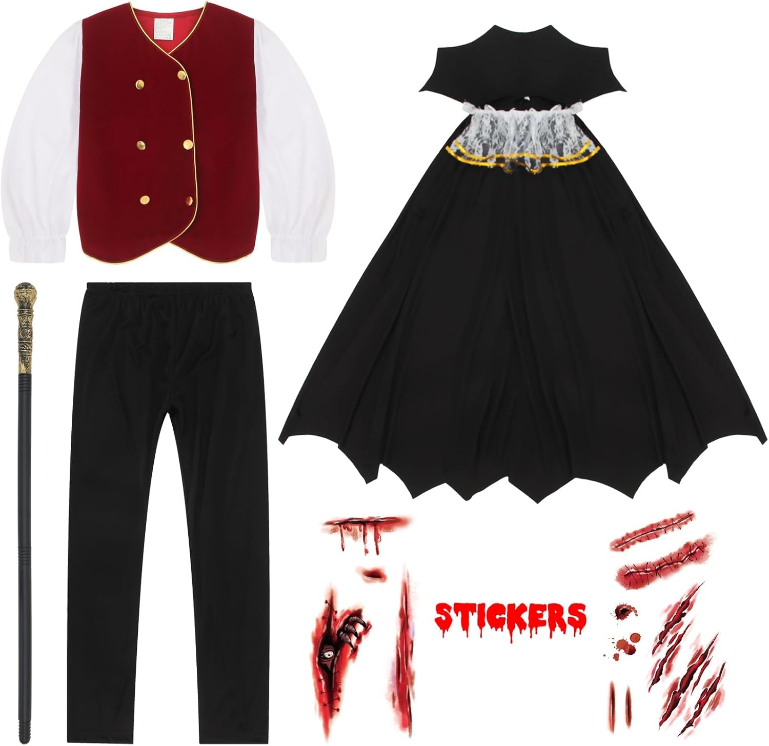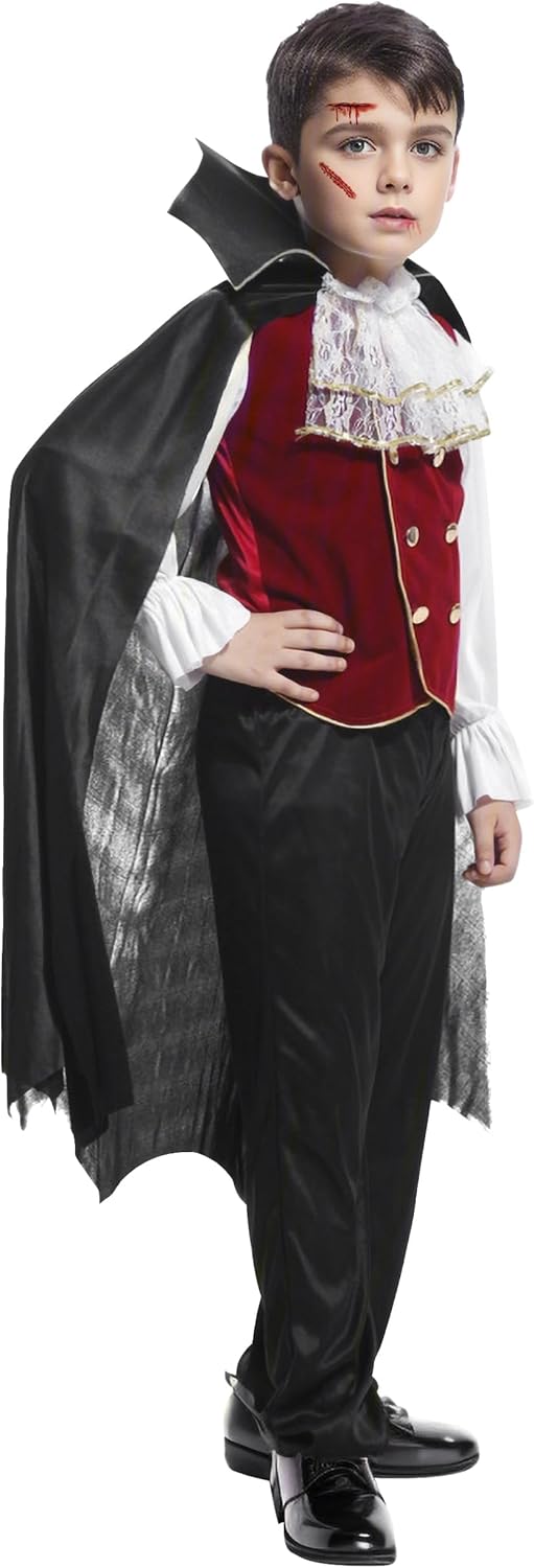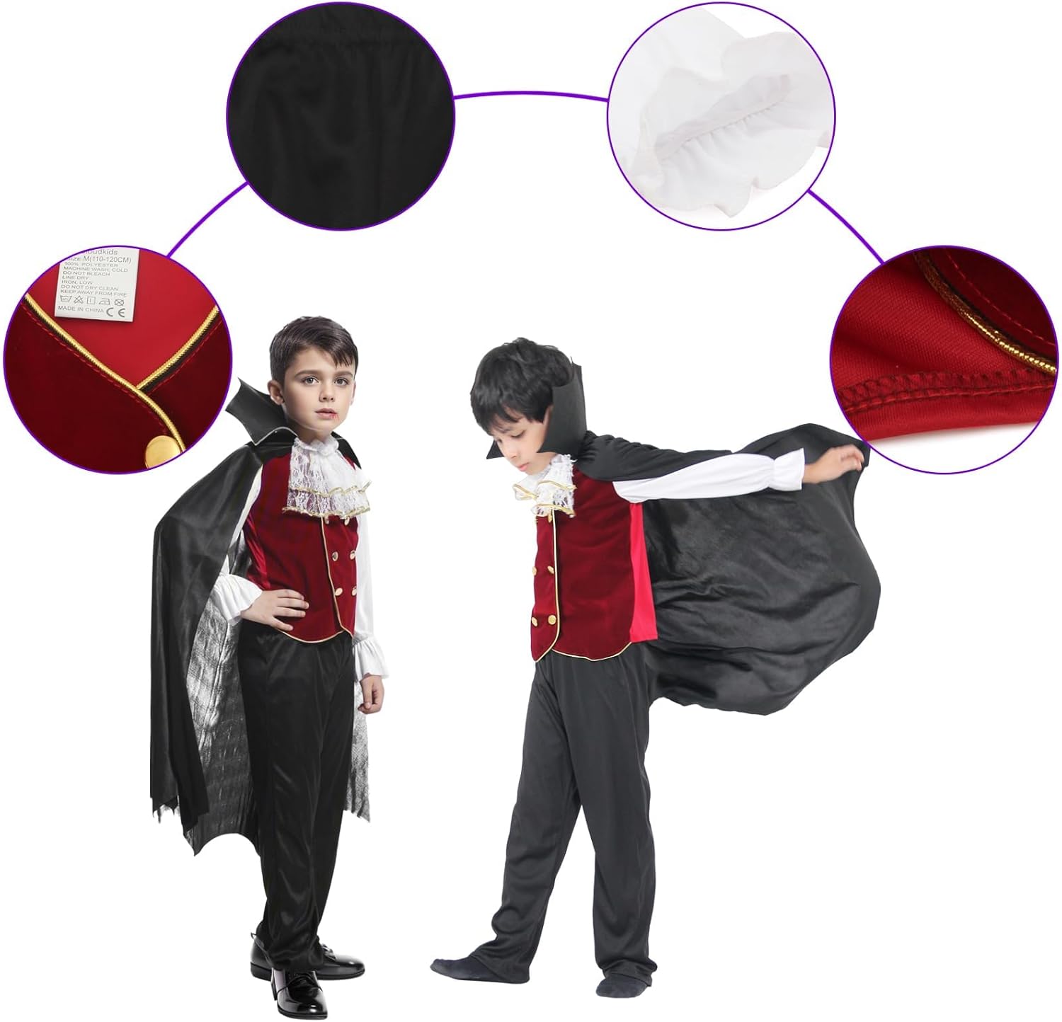 Customers find the costume outfit has a good quality fabric that is durable for trick-or-treating. The design is detailed and gives the classic vampire look customers desired. Many find it comfortable to wear and perfect for Halloween with a few adjustments. However, some customers report that the lace neck piece is scratchy. There are mixed opinions on the fit.