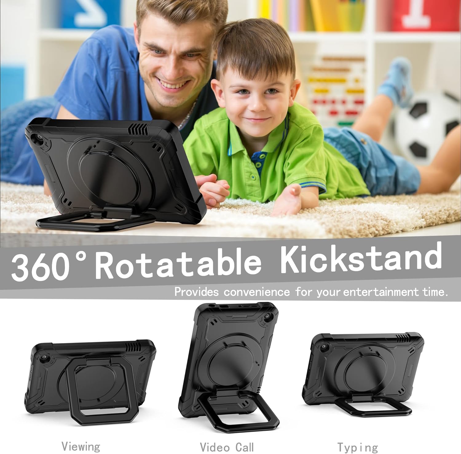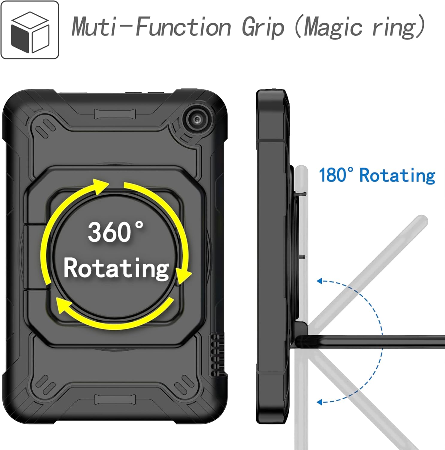 EpicGadget Case for Amazon Fire 7 Tablet (12th Generation, 2022 Released) – Heavy Duty Impact Resistant Case Cover with Rotating Ring Stand + 1 Stylus and 1 Screen Protector