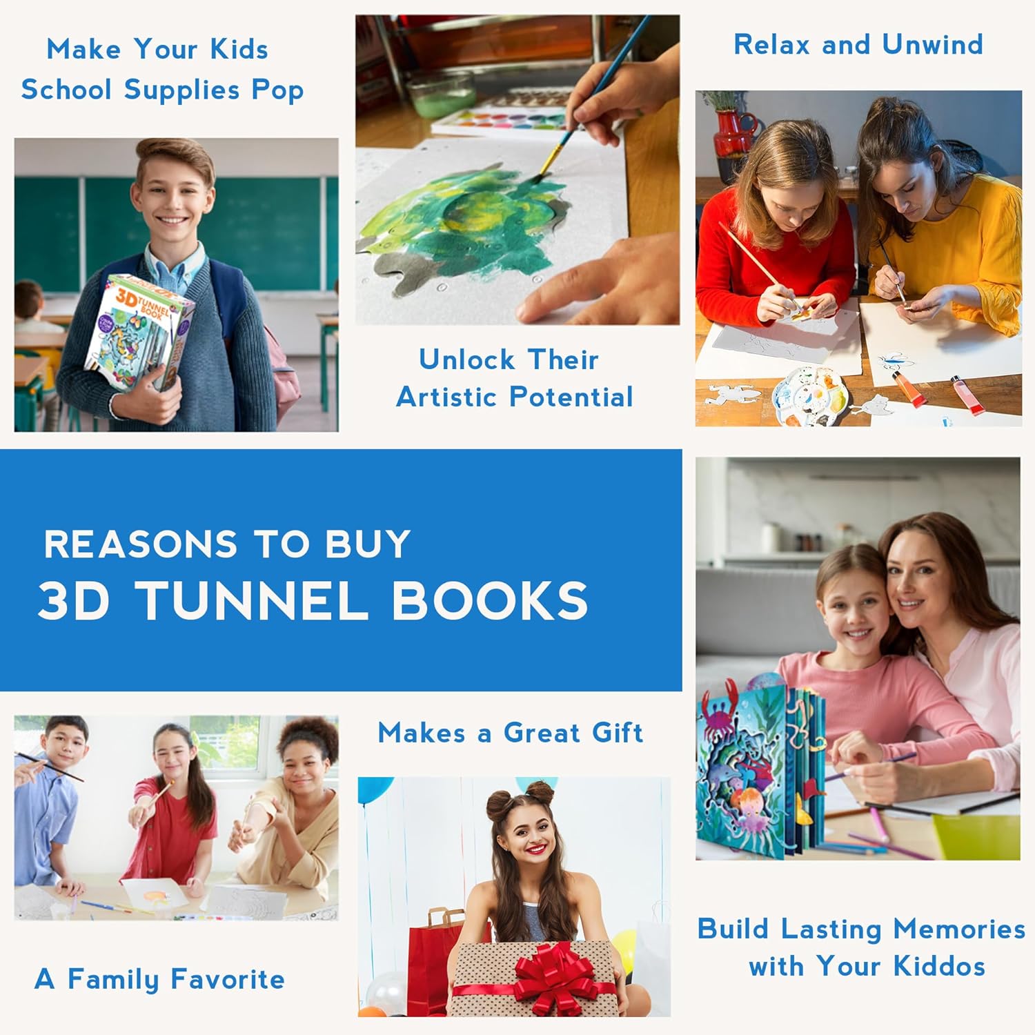 📚 A PERFECT GIFT & STEAM PROJECT FOR A CLASS OR HOMESCHOOL UNIT: The 3D Tunnel Books are a great educational activity and offer hours of screen free fun and entertainment! The Deluxe 3D Tunnel Books makes unique gift perfect for kids, family and grandparents.