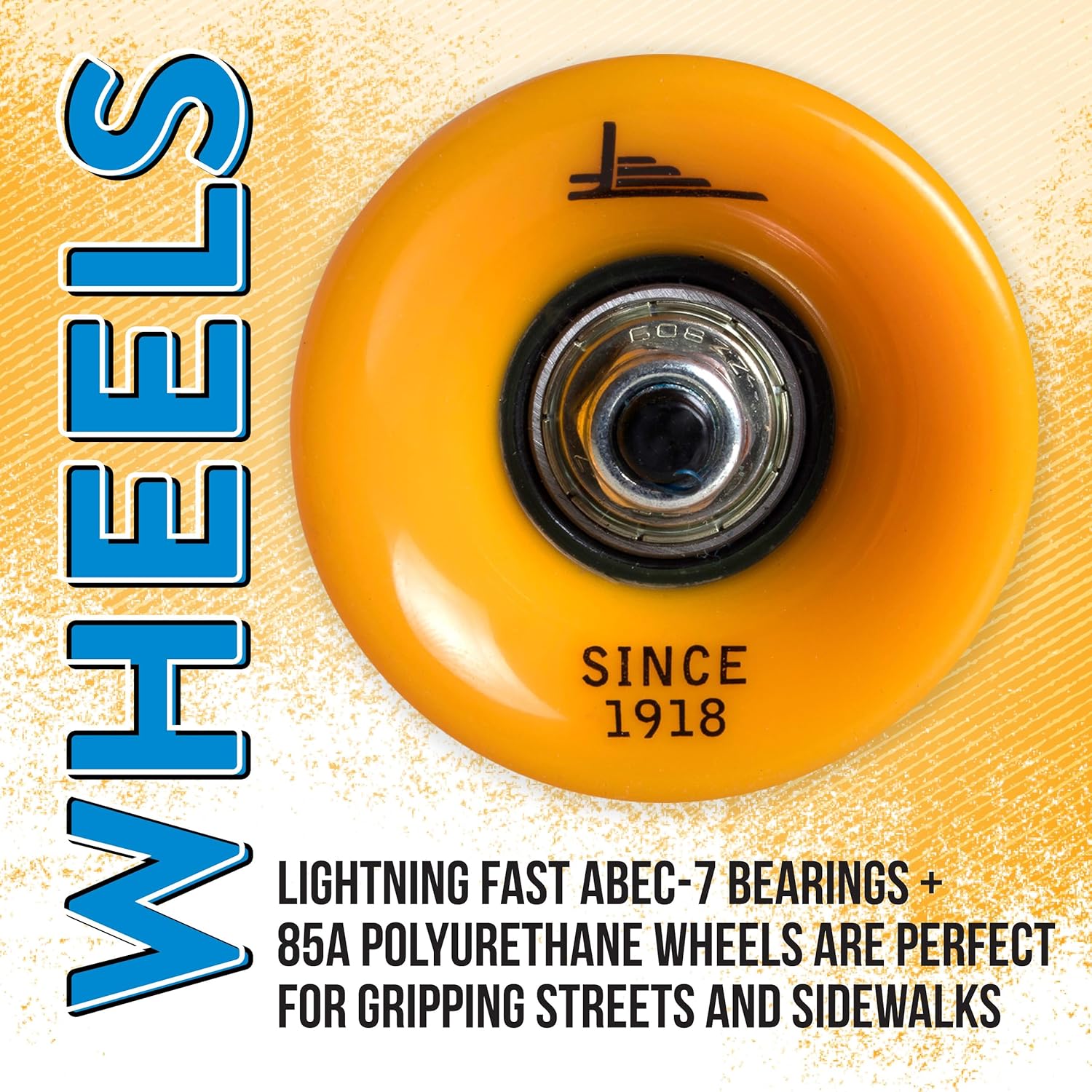 Quality Flybar Parts: Every part on Flybar 22” Skateboard are quality materials to give you the best ride possible. The aluminum trucks, medium bushings, ABEC 7 precision bearings, and soft 85A PU wheels will allow you to smoothly turn and cruise.