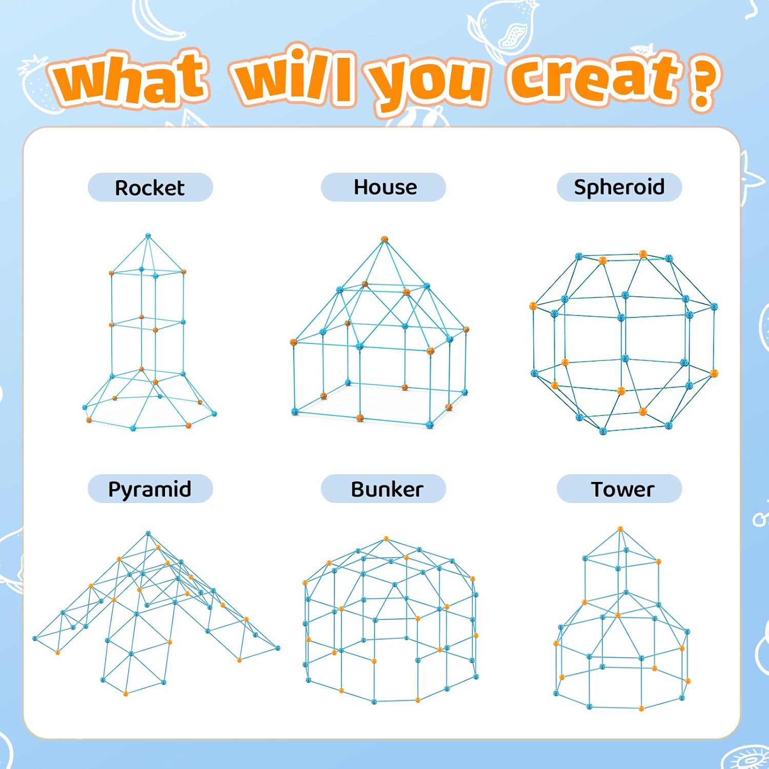 DURABLE AND SAFE CONSTRUCTION: With safety and quality at the forefront, the kids fort building kit is made from non-toxic plastic, ensuring durability and compliance with high safety standards. Designed for longevity, children can assemble, disassemble and recreate for countless hours.