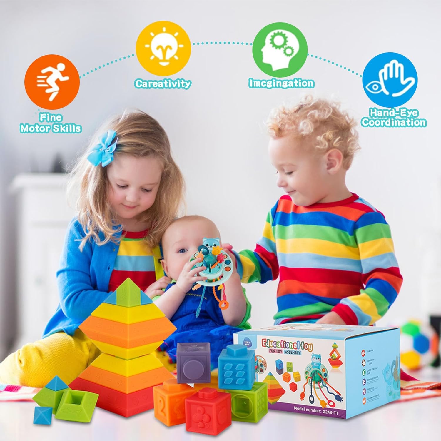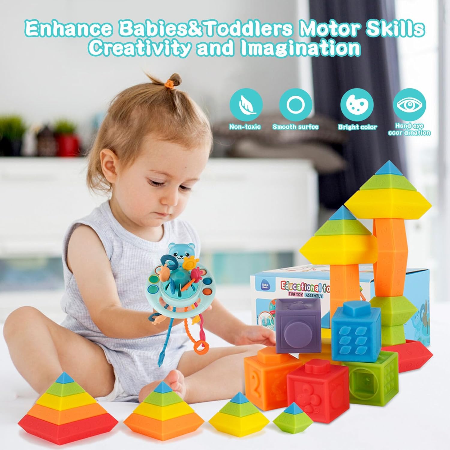 STEM Educational Toys – The 3 in 1 Montessori toys for 12 months are designed as learning toys to help your babies to develop their fine motor skills、hand-eye coordination、color recognition and sensory exploration.