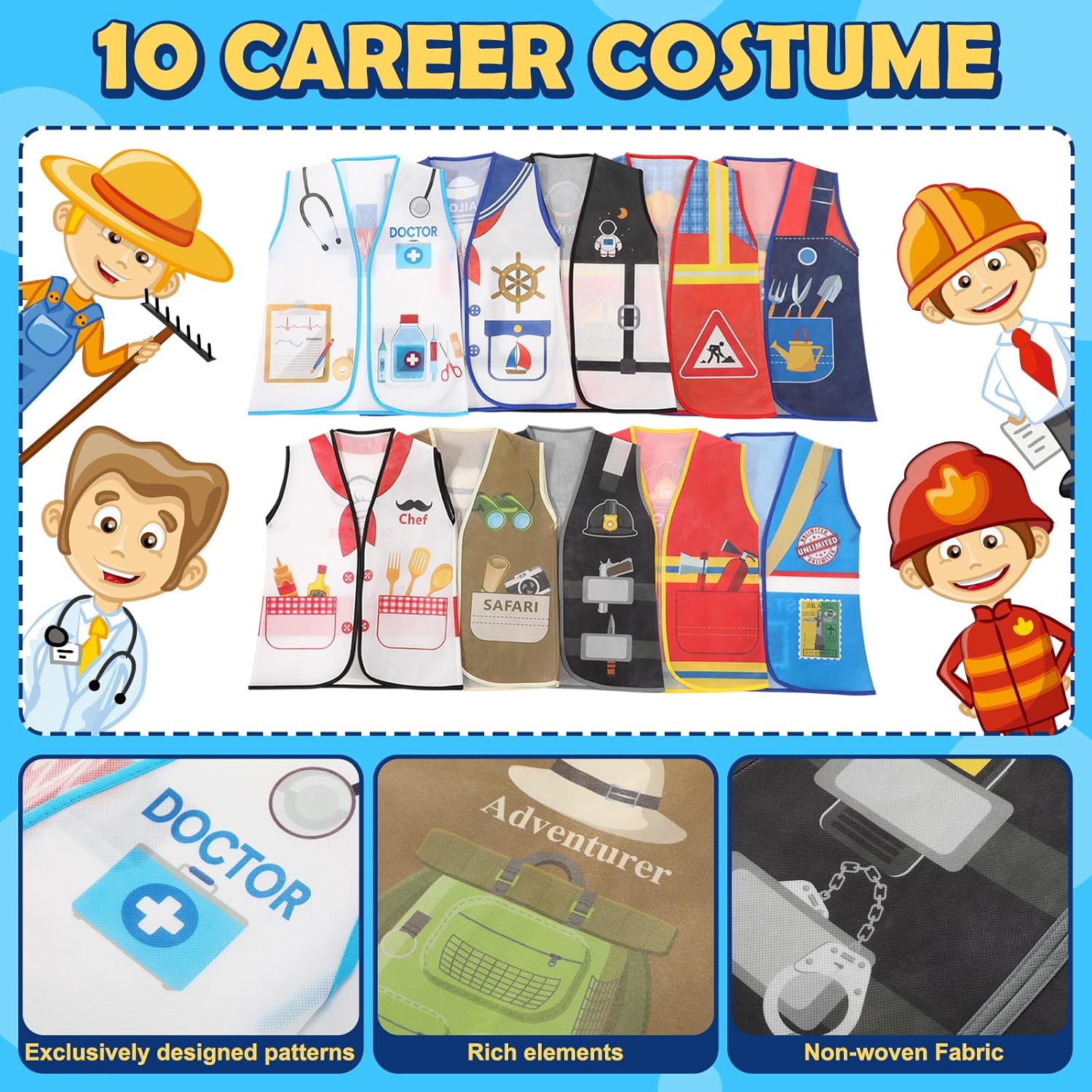 Chic theme design: the role-playing costume is intended for 10 common careers, including construction worker, farmer, fireman, astronaut, doctor, chef, adventurer, police, sailor, and postman; Each occupation vest is printed with typical career features, fun and realistic enough to get you immersed in the role playing