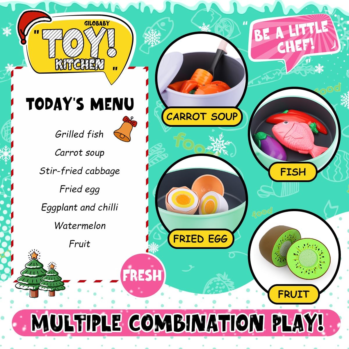 Be the first to review “GILOBABY Play Kitchen Accessories, Play Food Sets...”