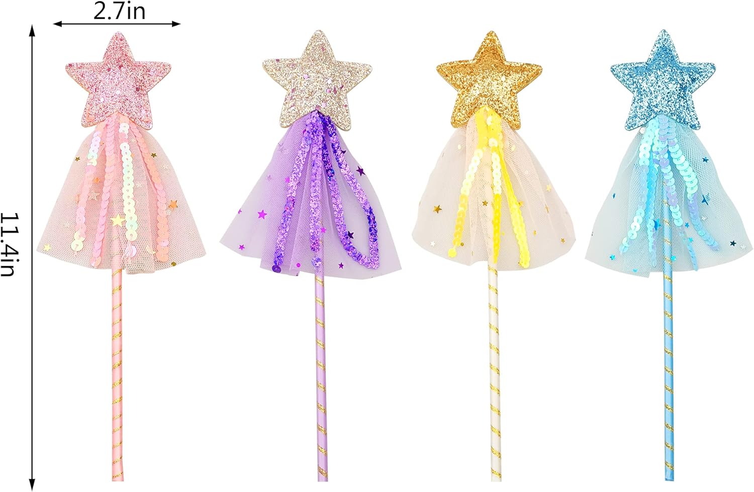 You will receive 4 pieces of glitter star wands in pink, purple, blue and yellow colors, vibrant and beautiful to look, can easily get your favor.