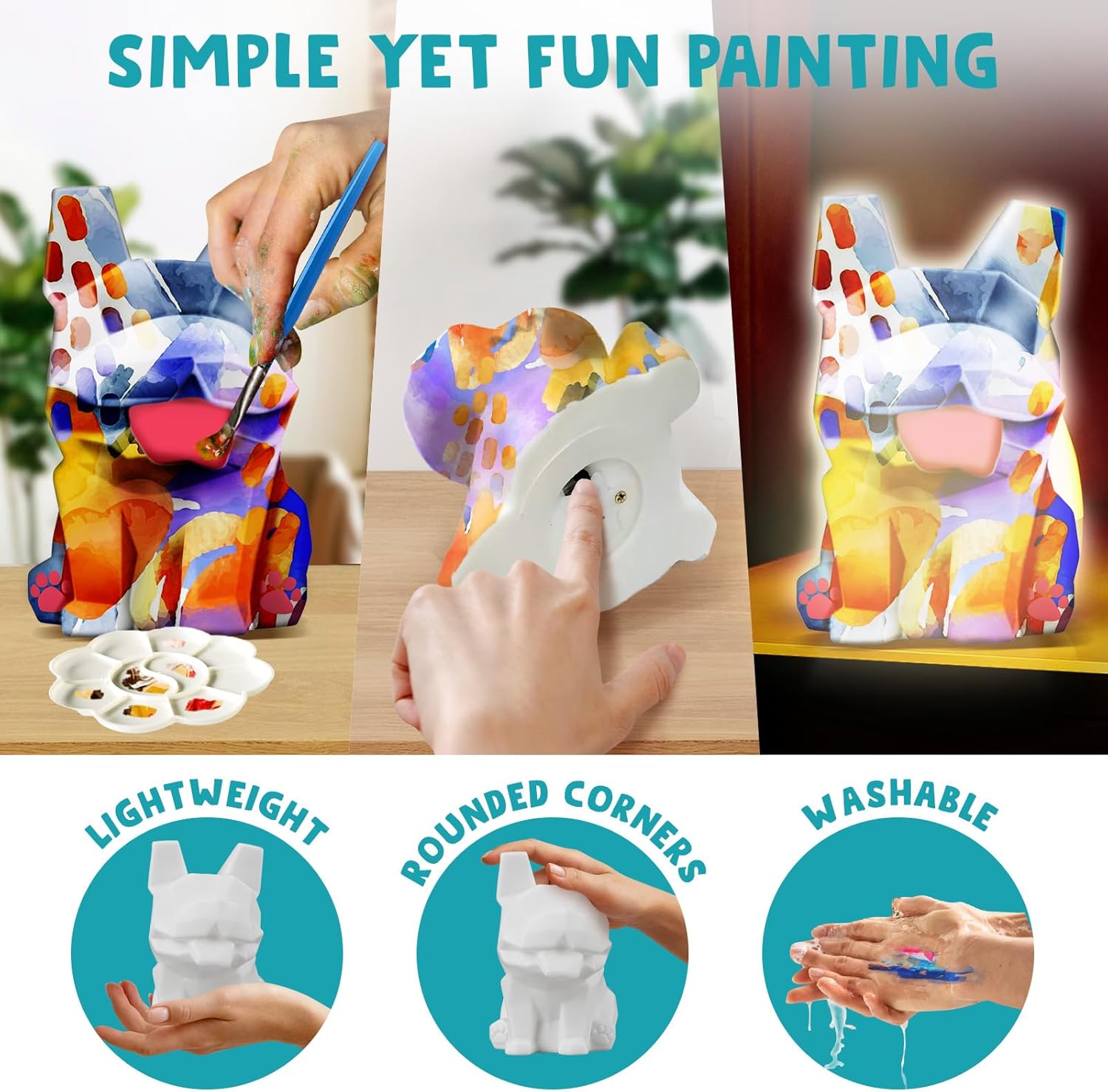 🌟【Use As Night Light Or Home Decoration】 Light up your room with a bulldog lamp you’ve painted yourself! This dog craft kit not only allows kids to paint their hound lamp but also lights up their space with their artistry. It’s ideal for sparking creativity in arts and crafts for kids ages 8-12.
