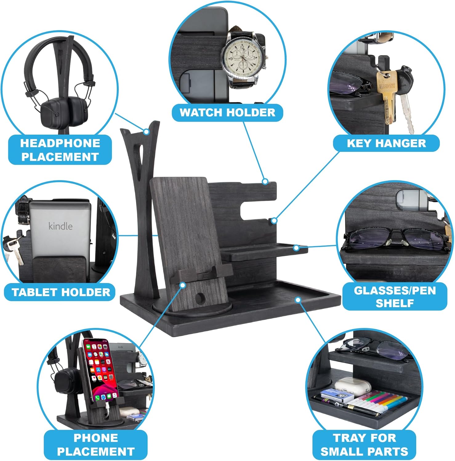 Smart Desk Organization & Multifunctional Docking Station: This nightstand organizer will become an eye-catching and very practical accessory on your desk. It is a place for everything that is the same as an exclusive house for your personal belongings like a mobile phone charging station, tablet holder, key holder, books organizer, wallet stand, watch organizer, glasses station, and more. It helps you find them easily, save your time and space, and make your workspace more efficient!