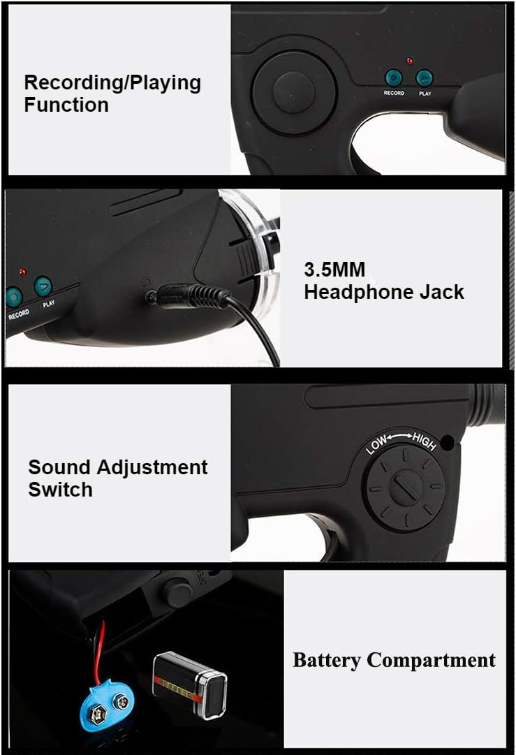 Special Design & Function: The design is appealing, 8x monocular allows you to view the objects 8 times closer and clear. Ergonomically designed handle, simple to operate with one hand by pulling the on/off switch trigger. You can adjust the volume from low to high for better hearing. It can only record for about 12 seconds and you press the playback button to hear the sound with the FREE headphone