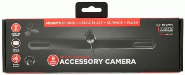 Multiple mounts included – behind plate mount, surface mount and flush mount, Improved power circuit, Can be viewed while driving, with compatible monitor, Water resistant to protect from the elements, IP67 rated, 170-degree viewing angle, Mounting: front, rear, 3 year warranty.