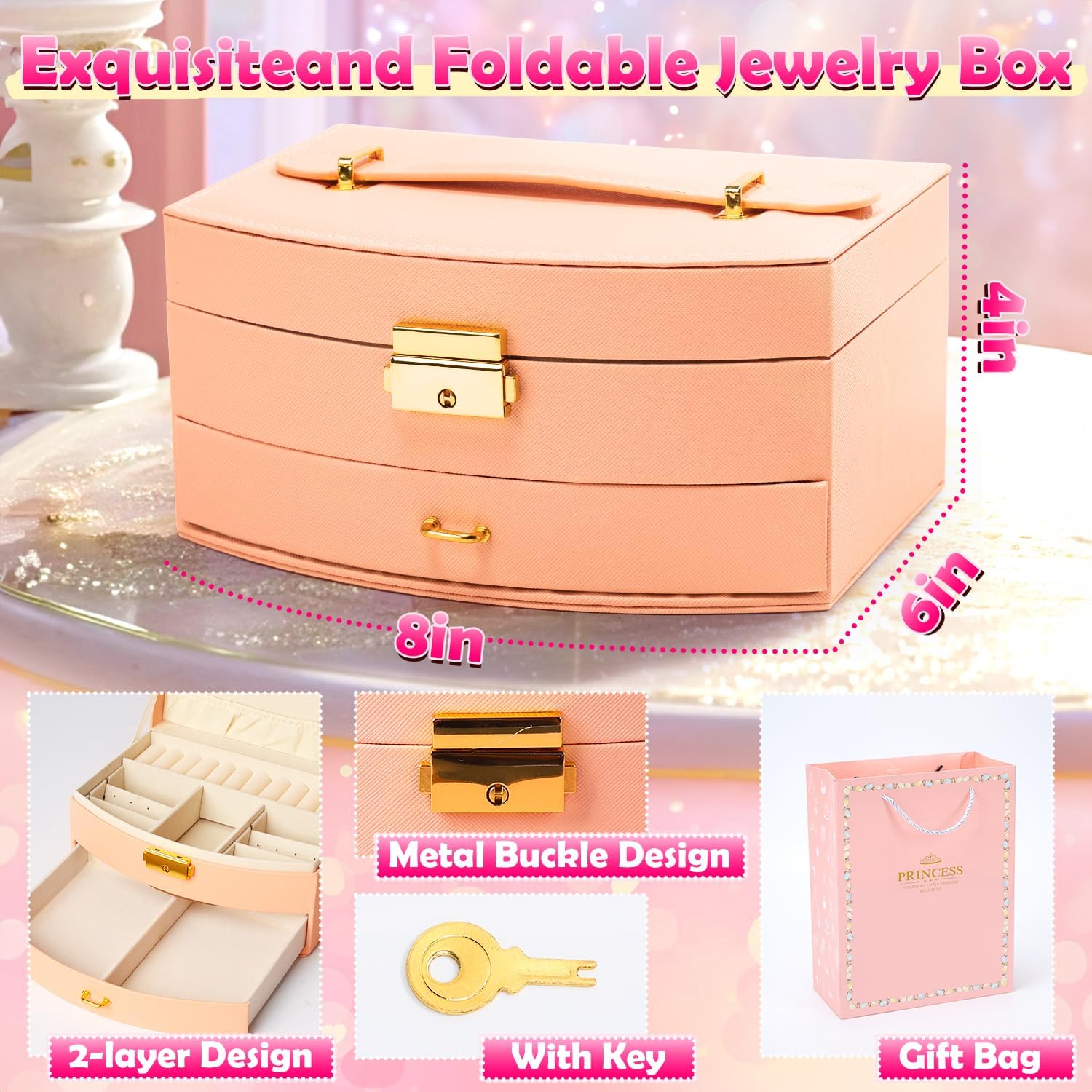 Jewelry Box: Not only will you get a girl’s hair accessory, you’ll also get a beautiful jewelry storage box(size: 8*6*4 inches). It is made of premium PU leather with soft velvet interior, double layers and removable dividers design, easy to organize and store. The metal lock with key also protects your privacy well.