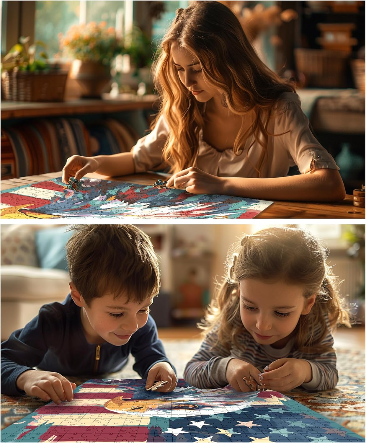 Premium Puzzles – The puzzles for adults 1000 pieces are printed with HD American flag and eagle artwork, fit together perfectly, clean edges, zero dust, no warping, no bending, and no rough cardboard.